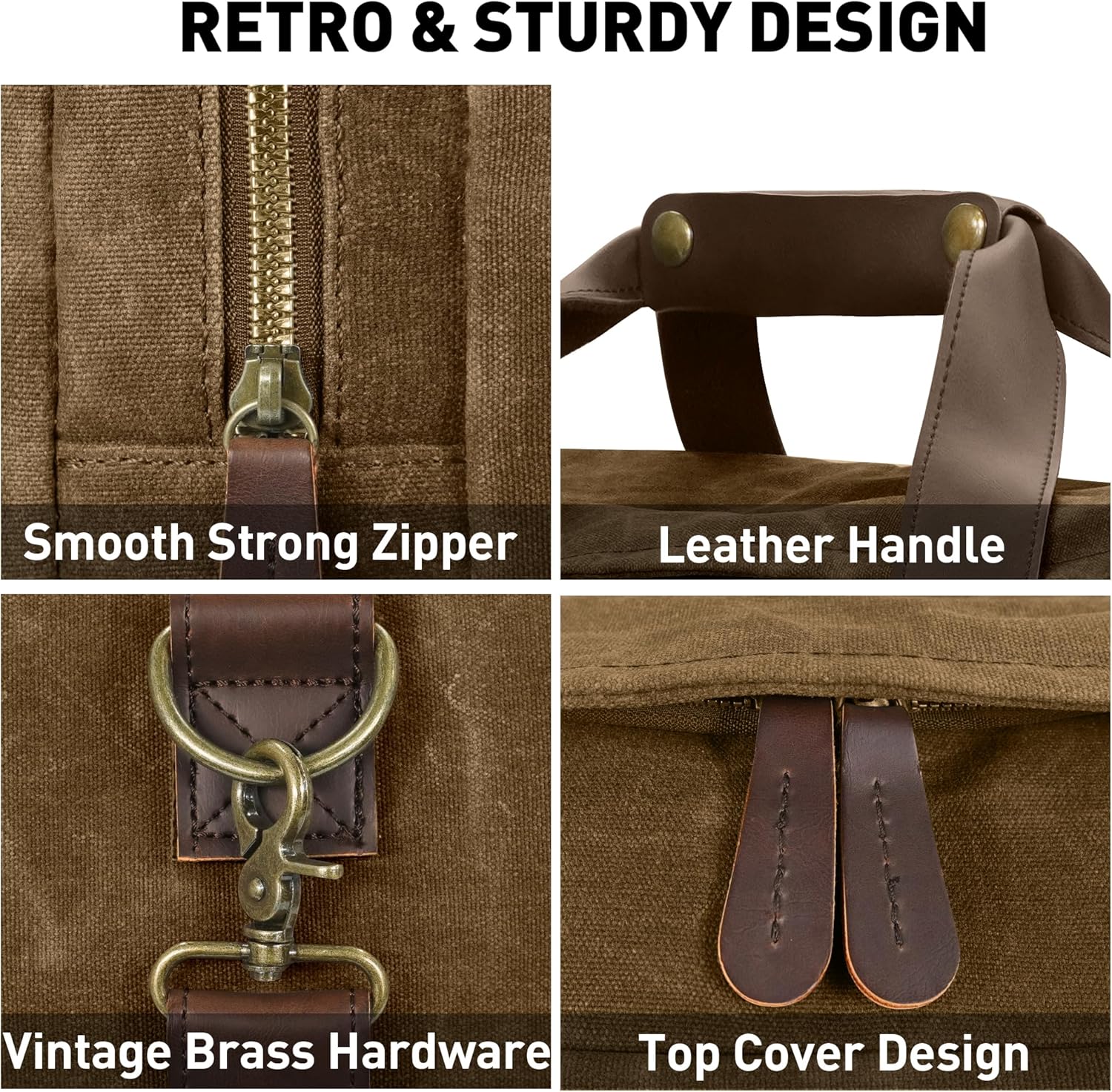 60L Travel Bags for Men, Nomad Washed Canvas Duffle Bag Vintage Genuine Leather Travel Duffel Bag Multifunctional Weekender Overnight Backpack with Shoes Compartment