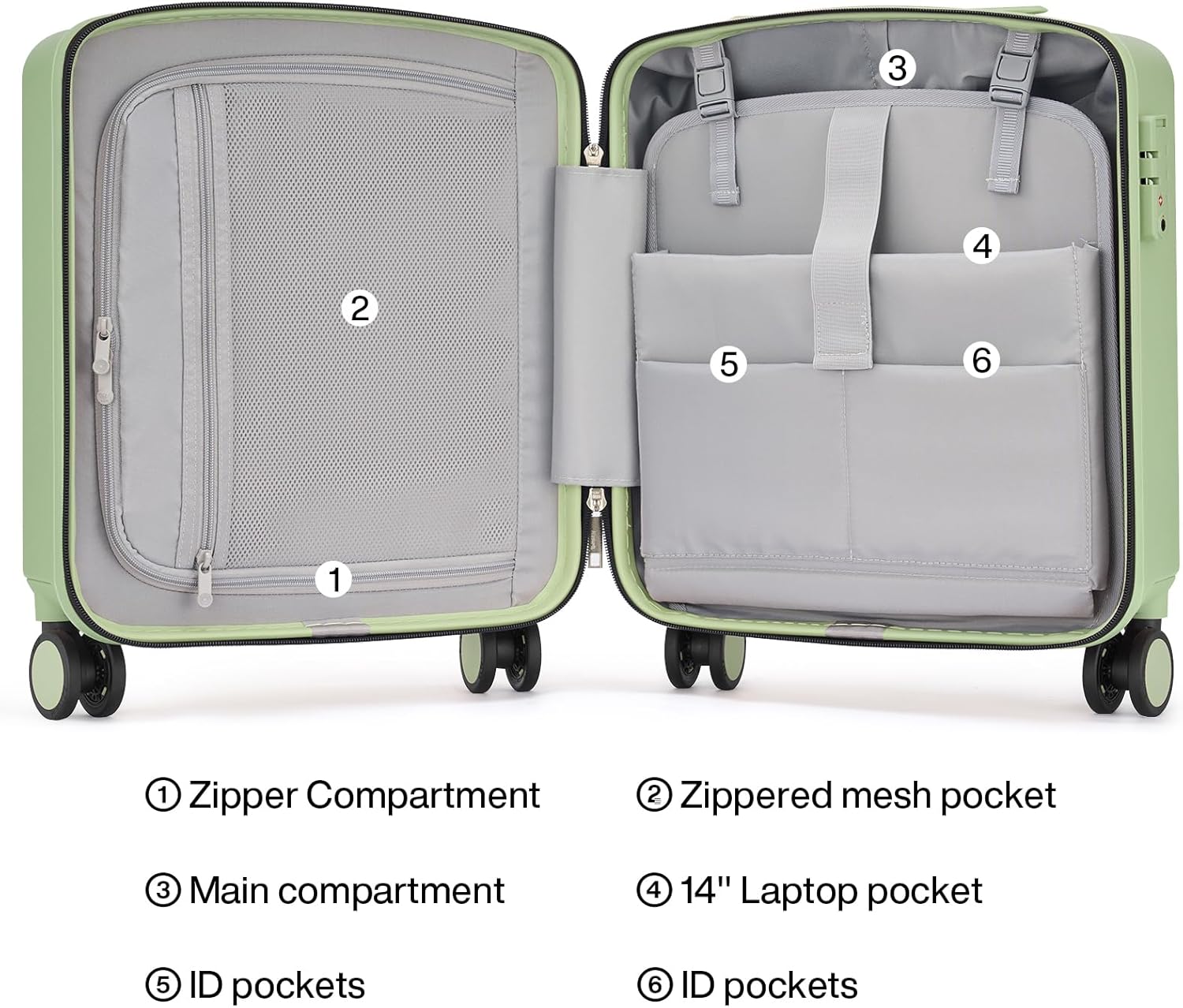 Hanke 16 Inch Underseat Carry On Luggage, Airline-Approved Hard Shell Small Suitcase with Spinner Wheels, Lightweight Tsa Lock Travel Luggage for Short Trips(Bamboo Green)