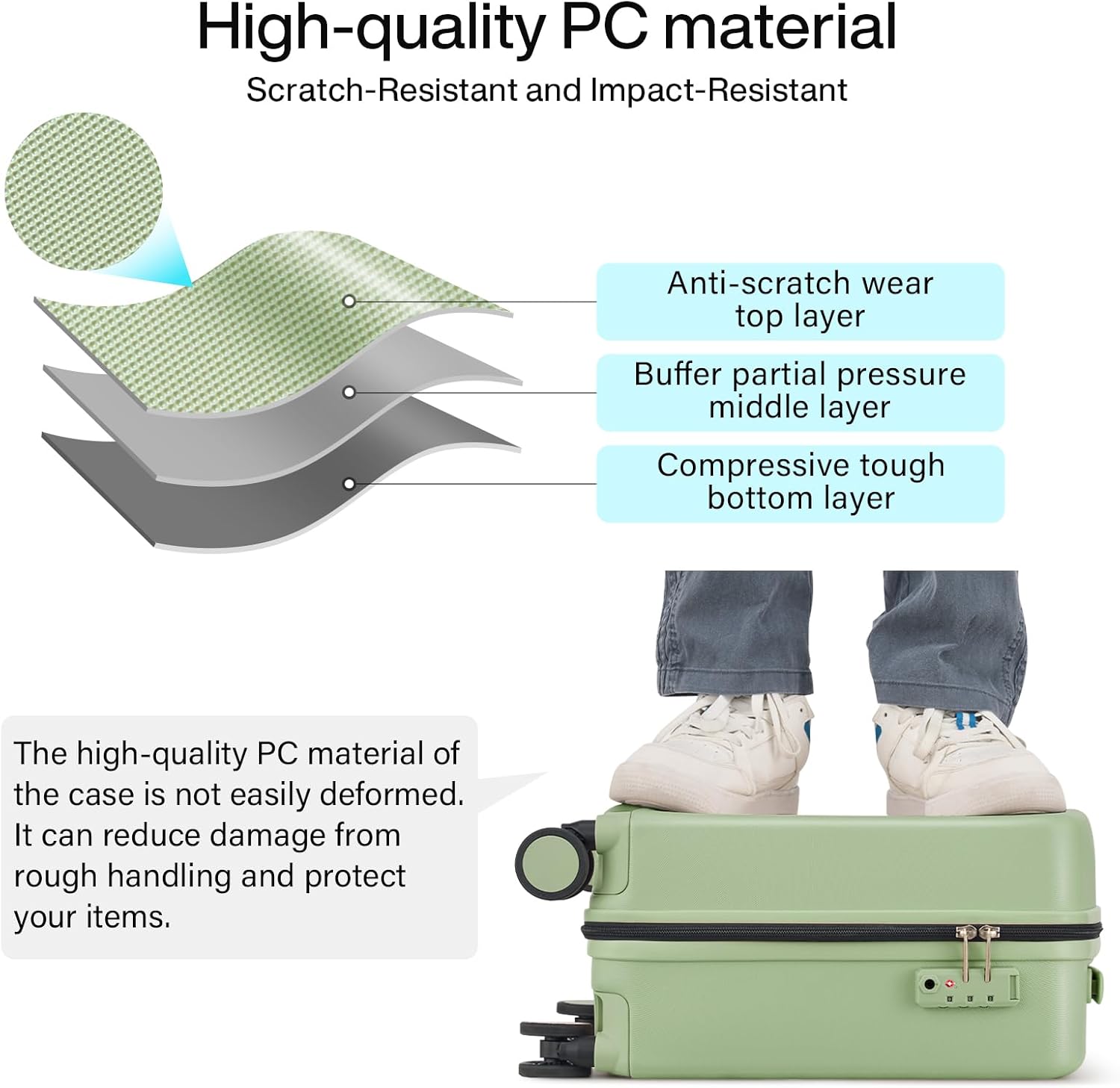 - 【Lightweight Yet Durable】This hard shell suitcases is made of premium Covestro polycarbonate(PC) which is extremely lightweight yet durable. And the hard case luggage is fine grain texture, not easy to scratch, keeping your suitcase beautiful trip after trip.