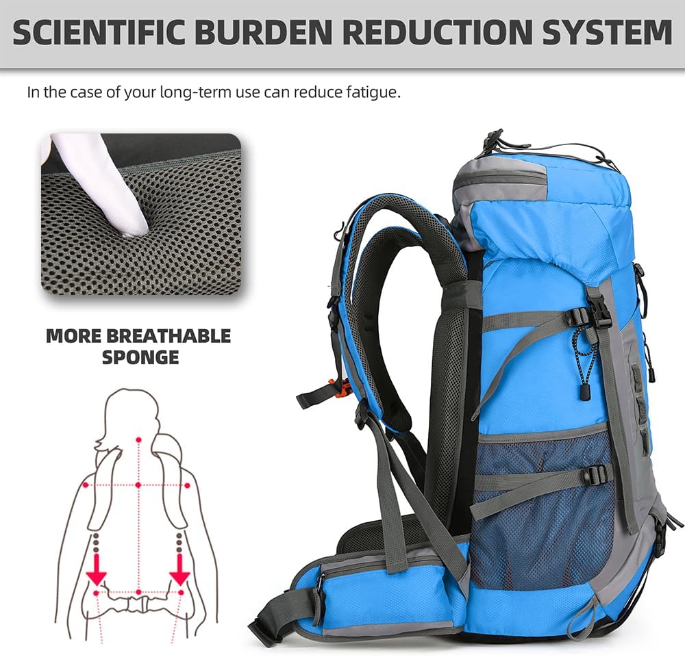 King'sGuard 60L Hiking Backpack Lightweight Camping Backpack with Rain Cover Large Waterproof Packable Outdoor Trekking Travel Backpack for Men Women (Blue)