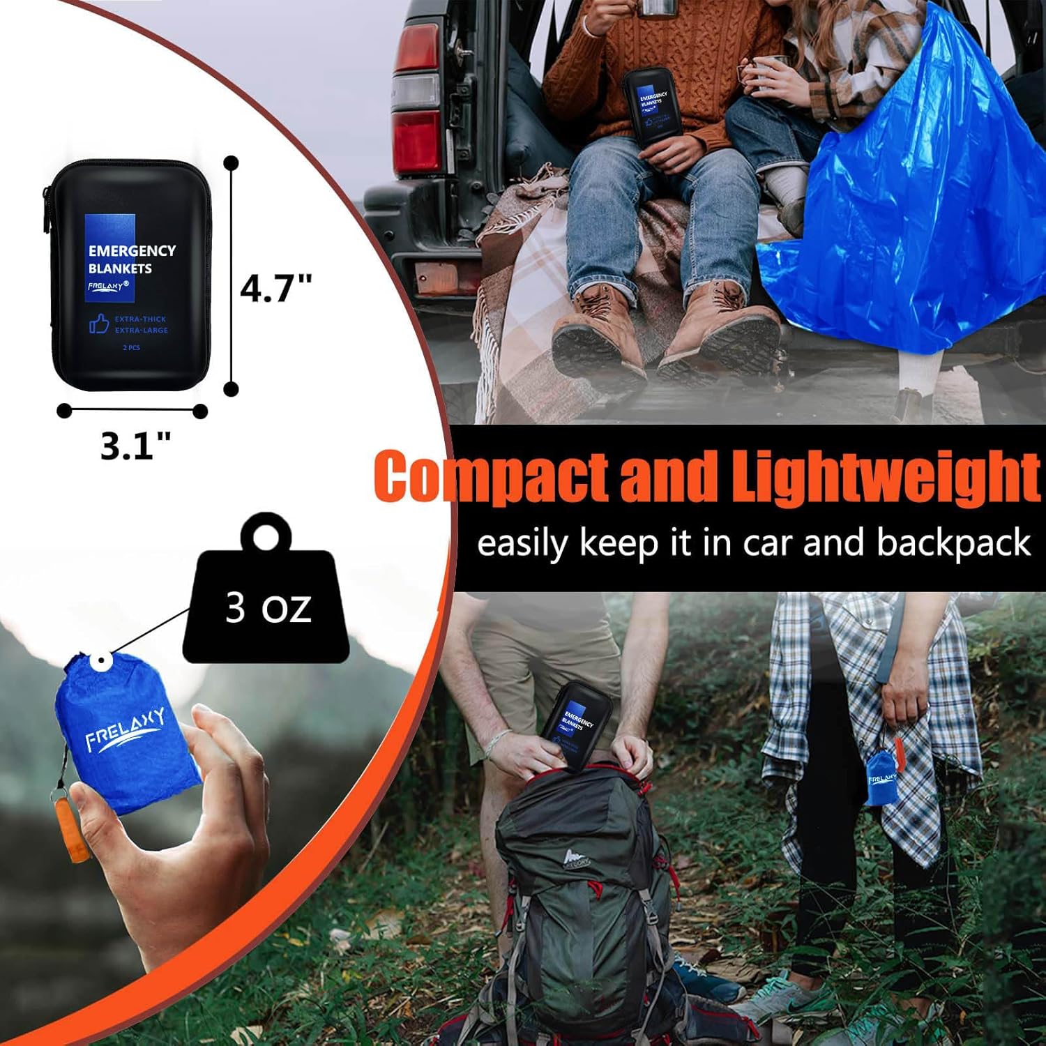 Frelaxy Emergency Blanket 2-Pack/4-Pack, Extra-Thick Extra-Large Space Blankets with Whistles, Storage Pouchs, and EVA case