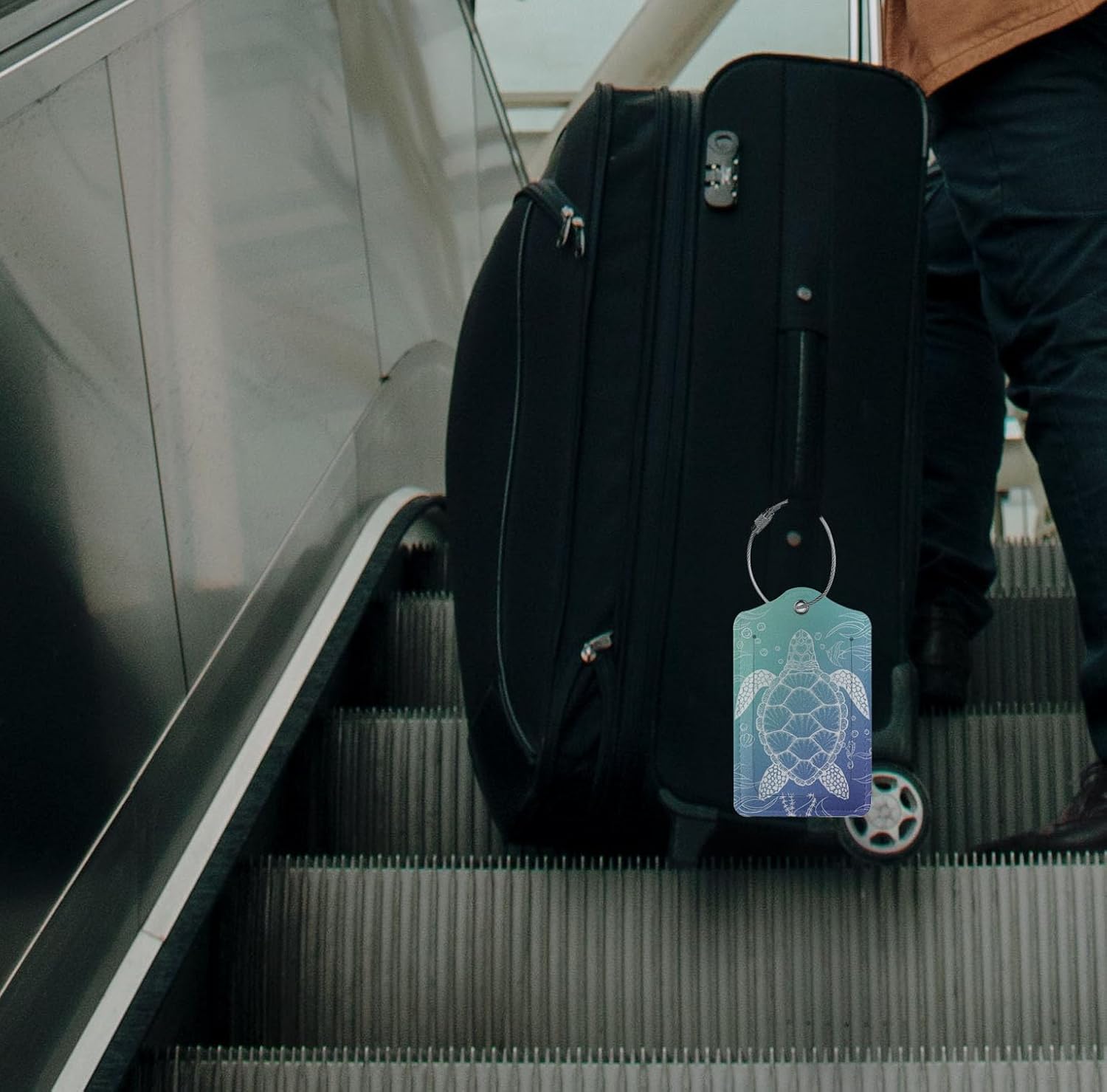 - 【A Combination Set 】: Each Package Comes With 2 Pack Unique Sea Turtle Logo Luggage Tags. Our Cute Luggage Tags Are Made of High PU Quality Leather, Soft And Comfortable, And Can Be Bent, The Sides Are Stitched With Silk Thread, Very And Suitable for Long-Term Repeated Use.Size Is “(4.6 Inch 11.6cm)X (2.7 Inch 7.3cm)”.
