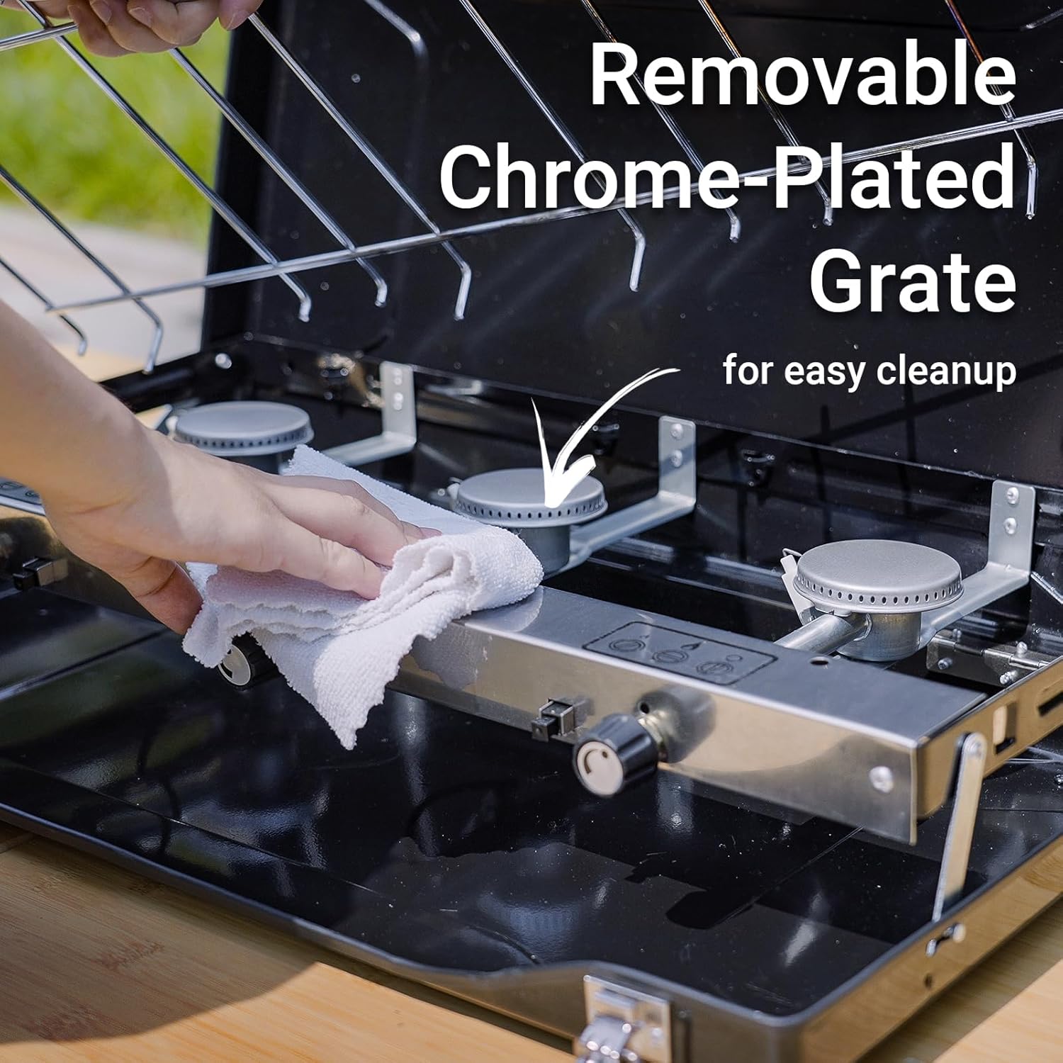 - EASY TO CLEAN: Our portable propane stove comes with a drip tray that makes it easy for quick clean up. You won’t be bothered by stains on tables or clothes. All you need to do after cooking is to remove the tray and wipe it until it looks clean again, and put it back to the camping stove case