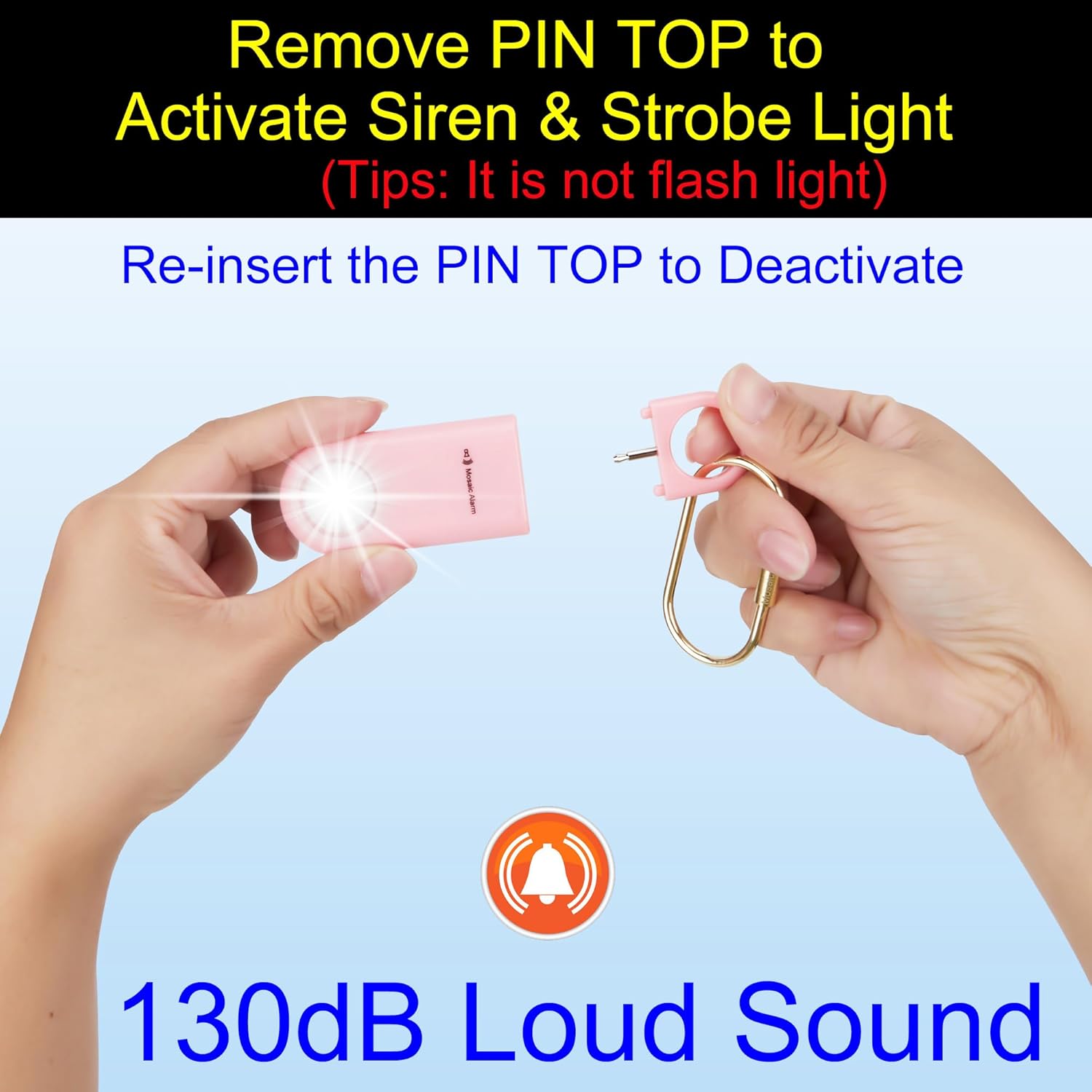 - 【Easy Remove PIN TOP to Activate Siren】It emits a very high-pitched, 130db loud piercing sound and last 30 minutes until the batteries died. Re-insert PIN TOP can stop the siren. This harsh sound might feel very uncomfortable for some sensitive individuals, but this is precisely what makes it highly effective at its purpose.