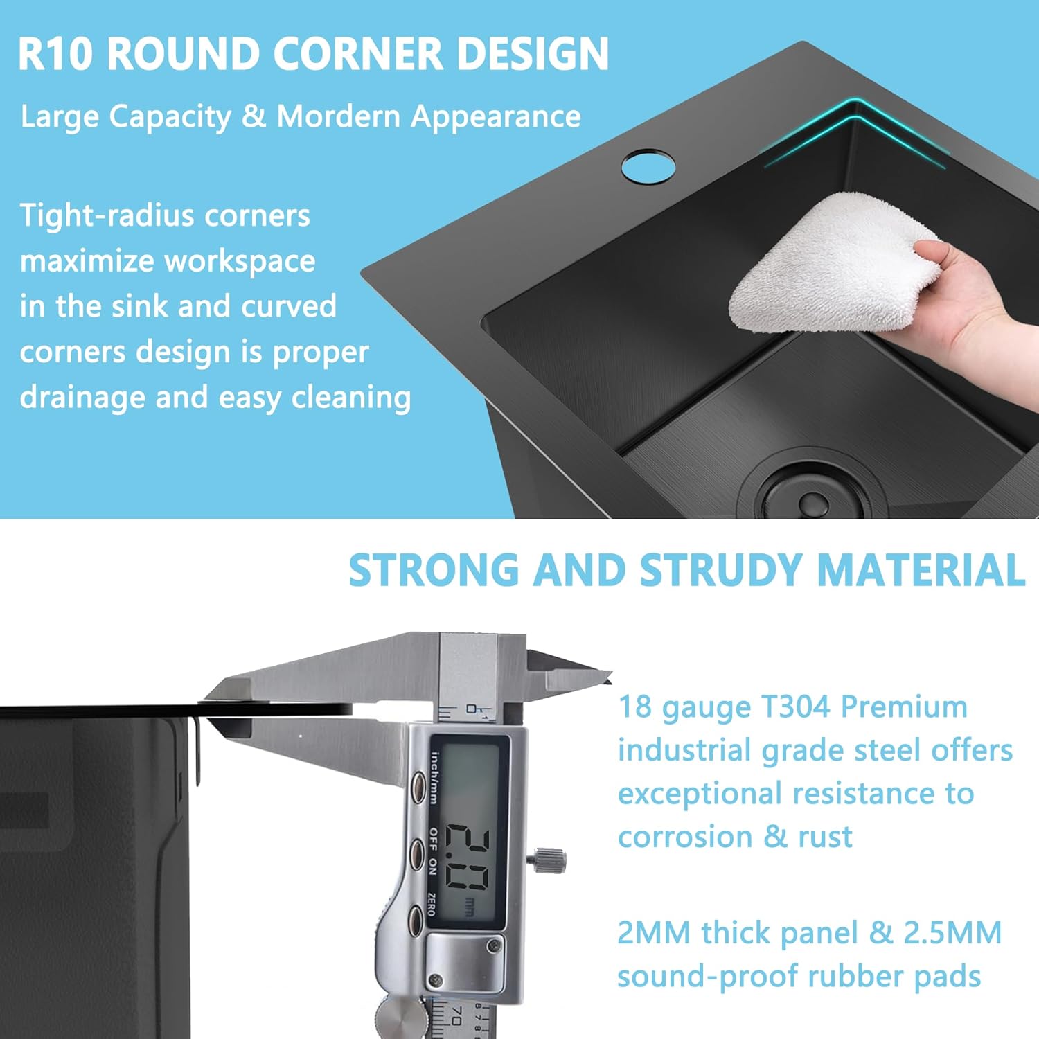 - [Black Bar Sink Drop In]: Winnpex drop in black bar sink is handcrafted by skilled artisans using premium-quality stainless steel, ensuring its durability and longevity. Gunmetal black brushed finish is applied as an outer layer using innovative NANO-PVD technique, which works like water on Lotus leaf, no water trace left.
