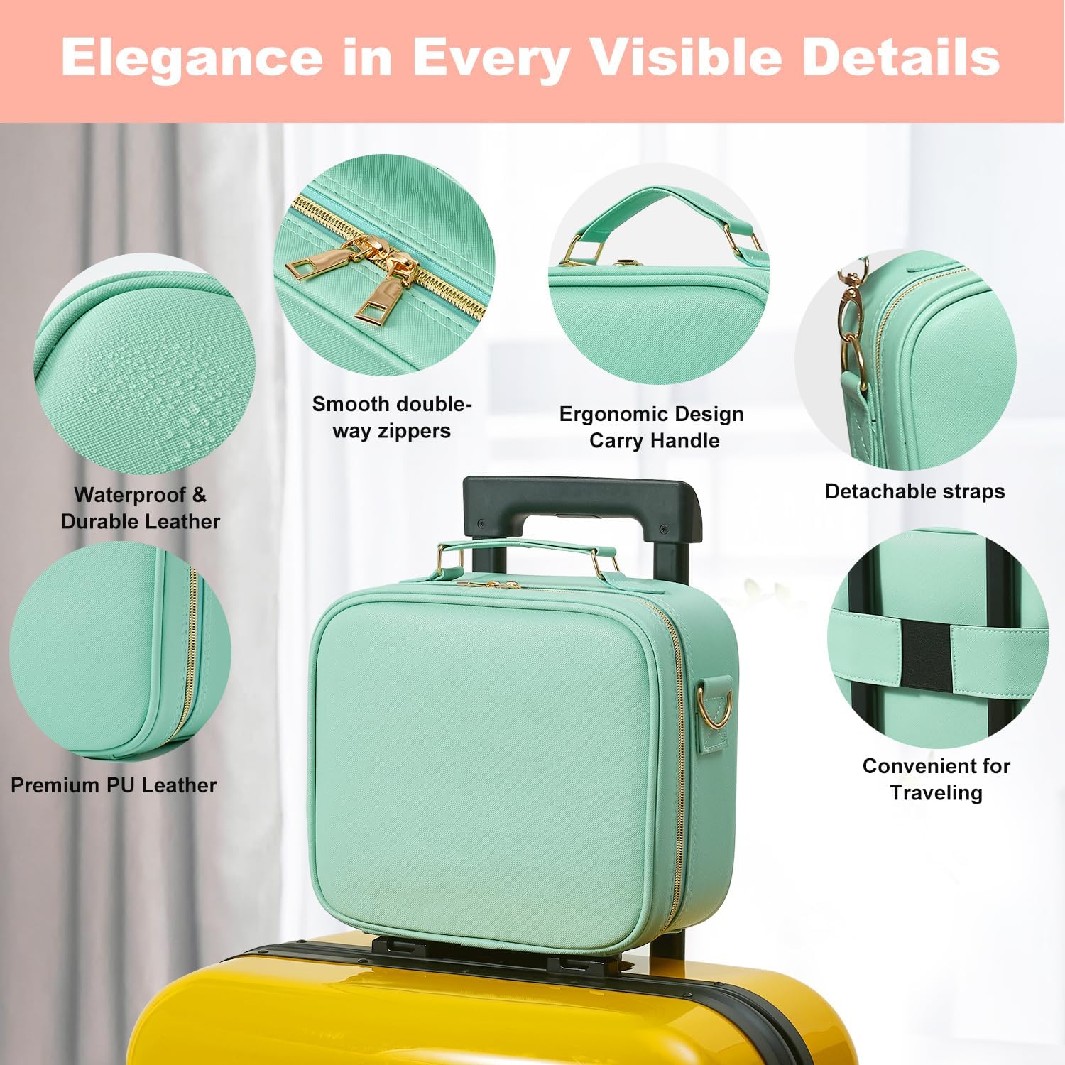 Mocado Travel Makeup Bag with LED Lighted Mirror, Travel Makeup Organizer, Makeup Case with 3 Color Lighted Setting and 10x Magnifying Mirror, Portable Storage and Adjustable Dividers (Powdery Green)