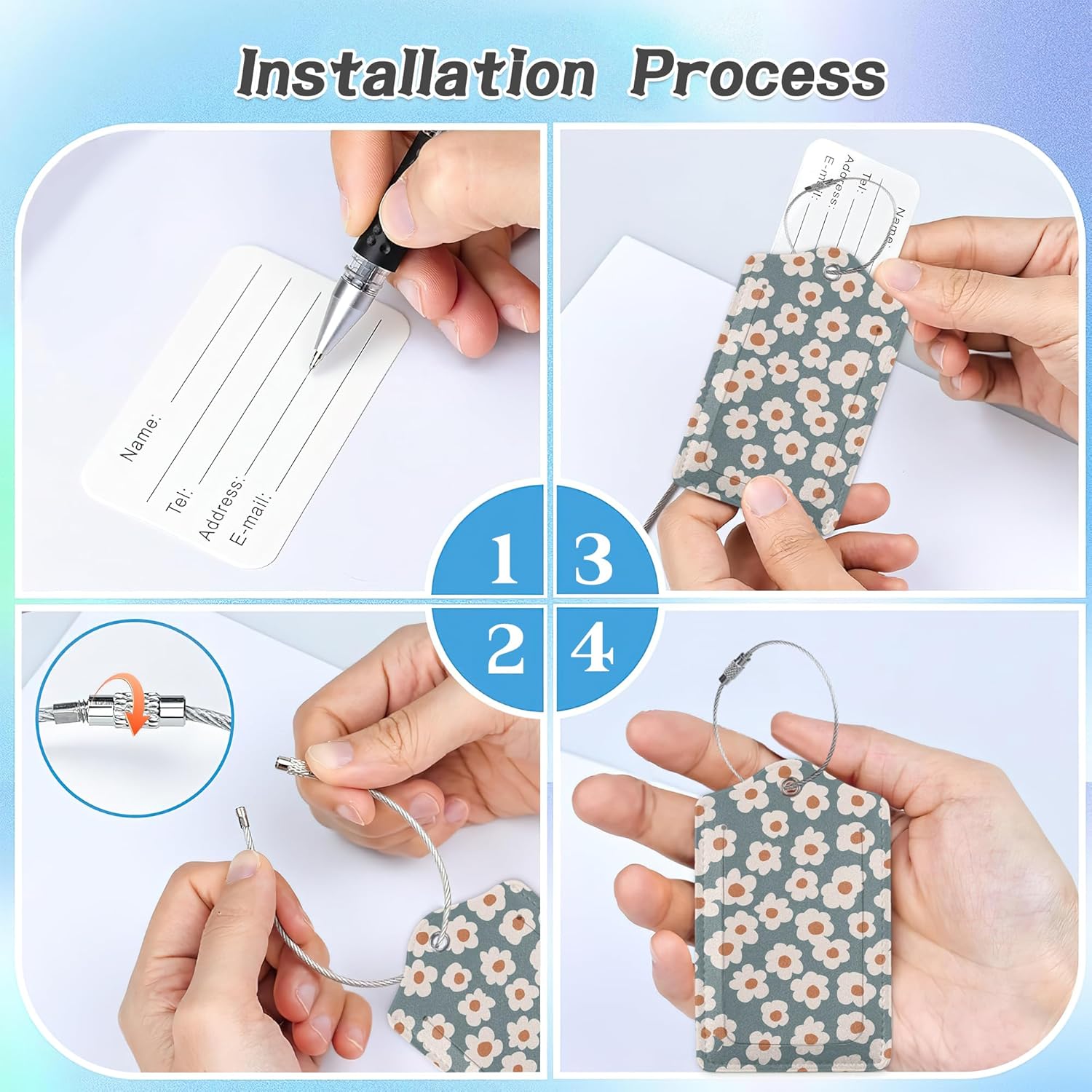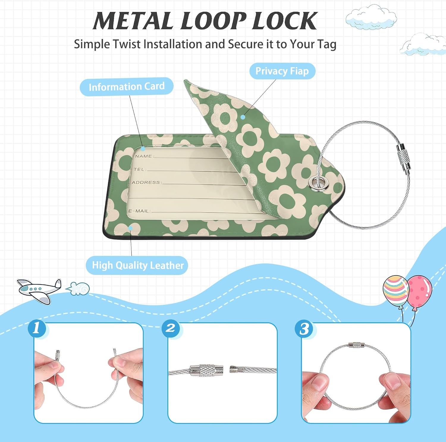 - 【Protect Your Information】: Each luggage tag comes with a privacy cover, ensuring that your personal details are not easily visible to others. The tag also includes a small information sheet where you can fill out your contact information, allowing for easy identification and assistance in the event of lost luggage.