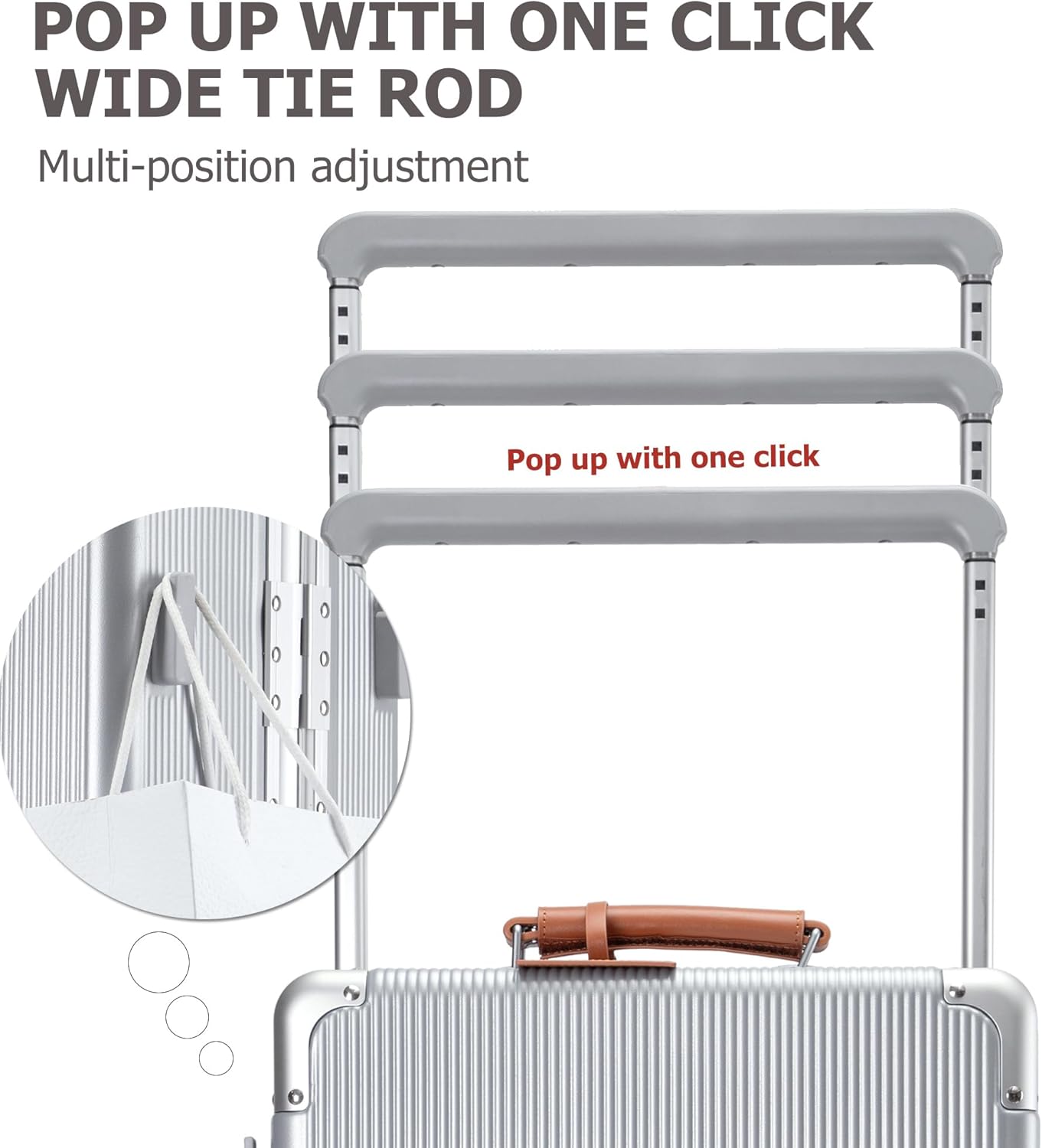 • Multi-Functional Luggage: Aluminum frame luggage Packed with versatility, featuring a convenient cup holder for on-the-go refreshment and a TSA-approved combination lock for added security.