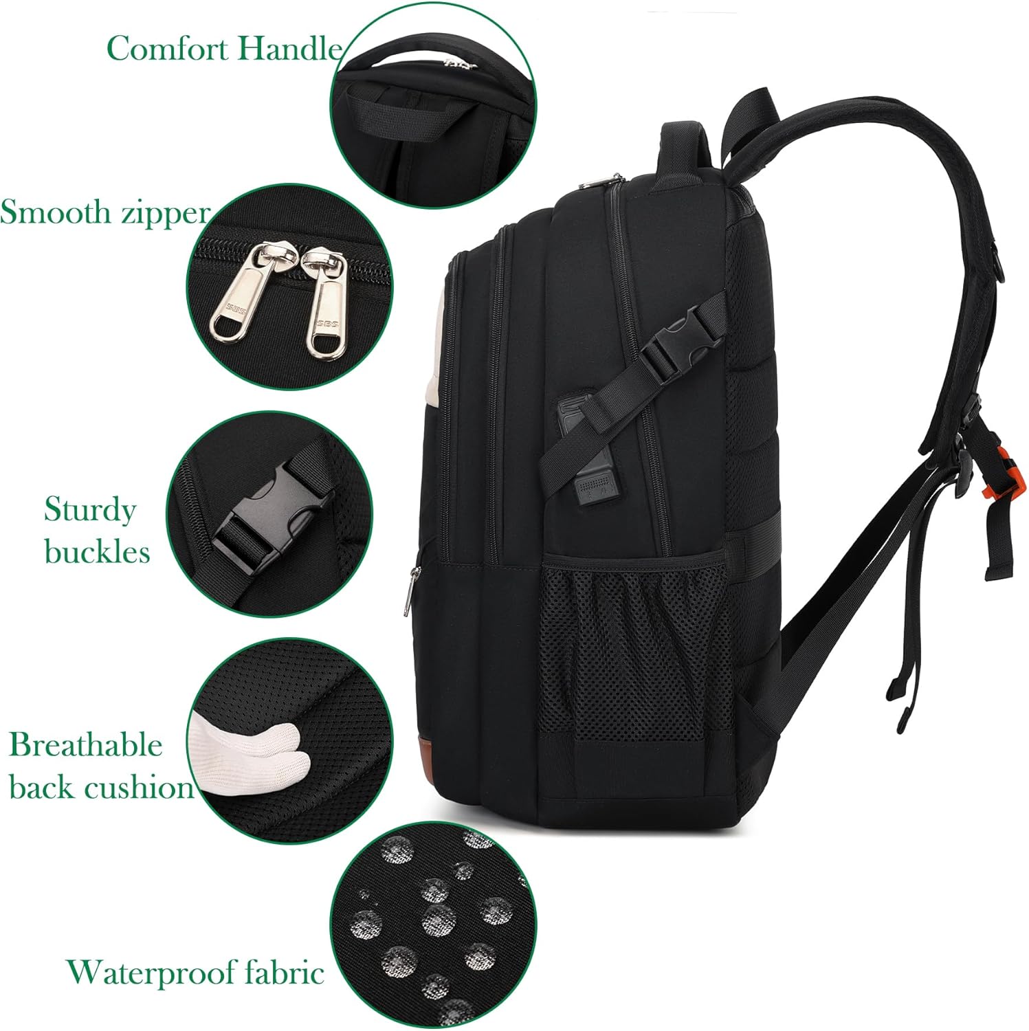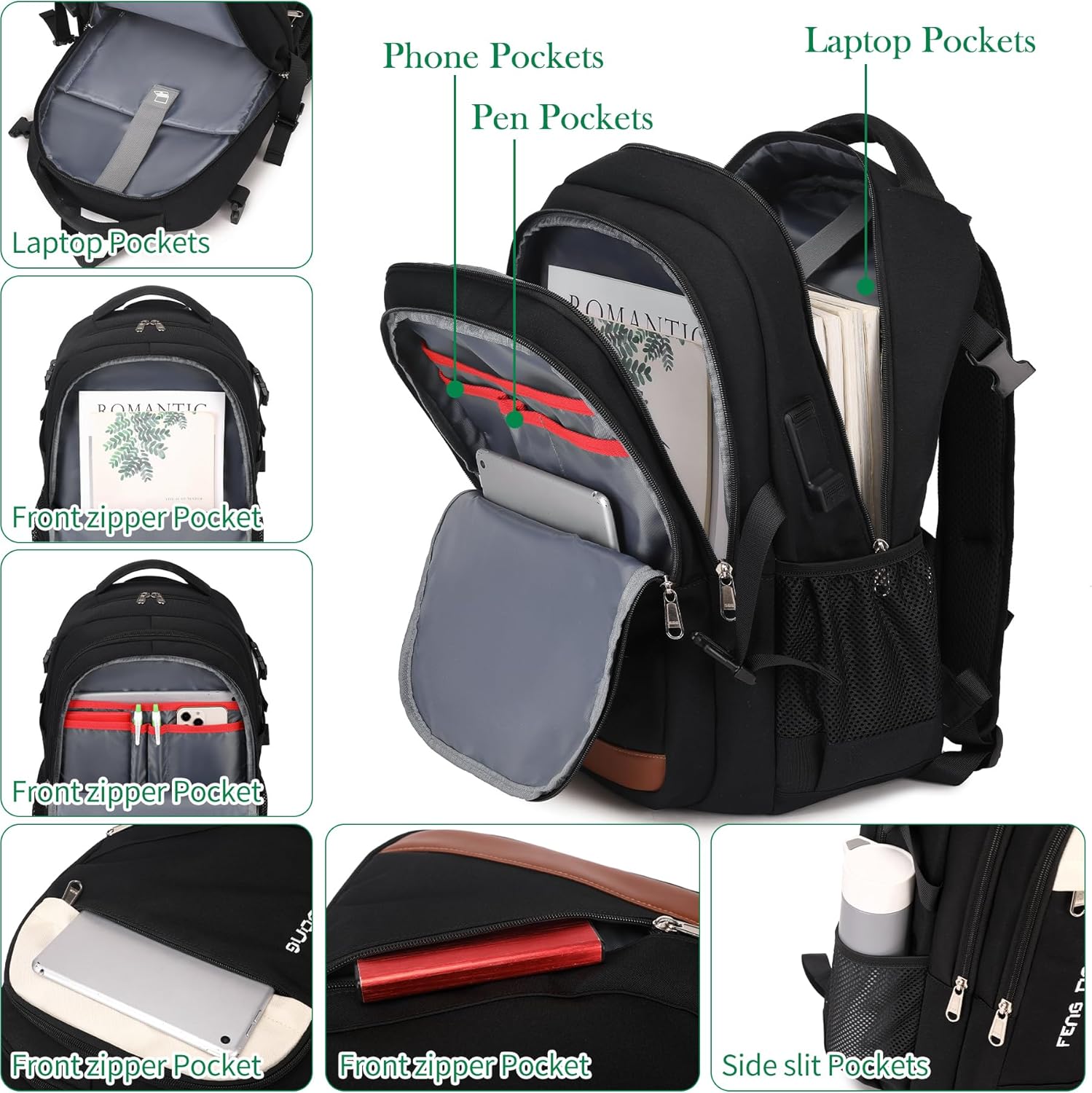 FENGDONG 17.3 inch Large Laptop Backpack Travel College Backpack Waterproof Bookbag for Men & Women Business Backpack with USB Charging Port and Headset Port Black White