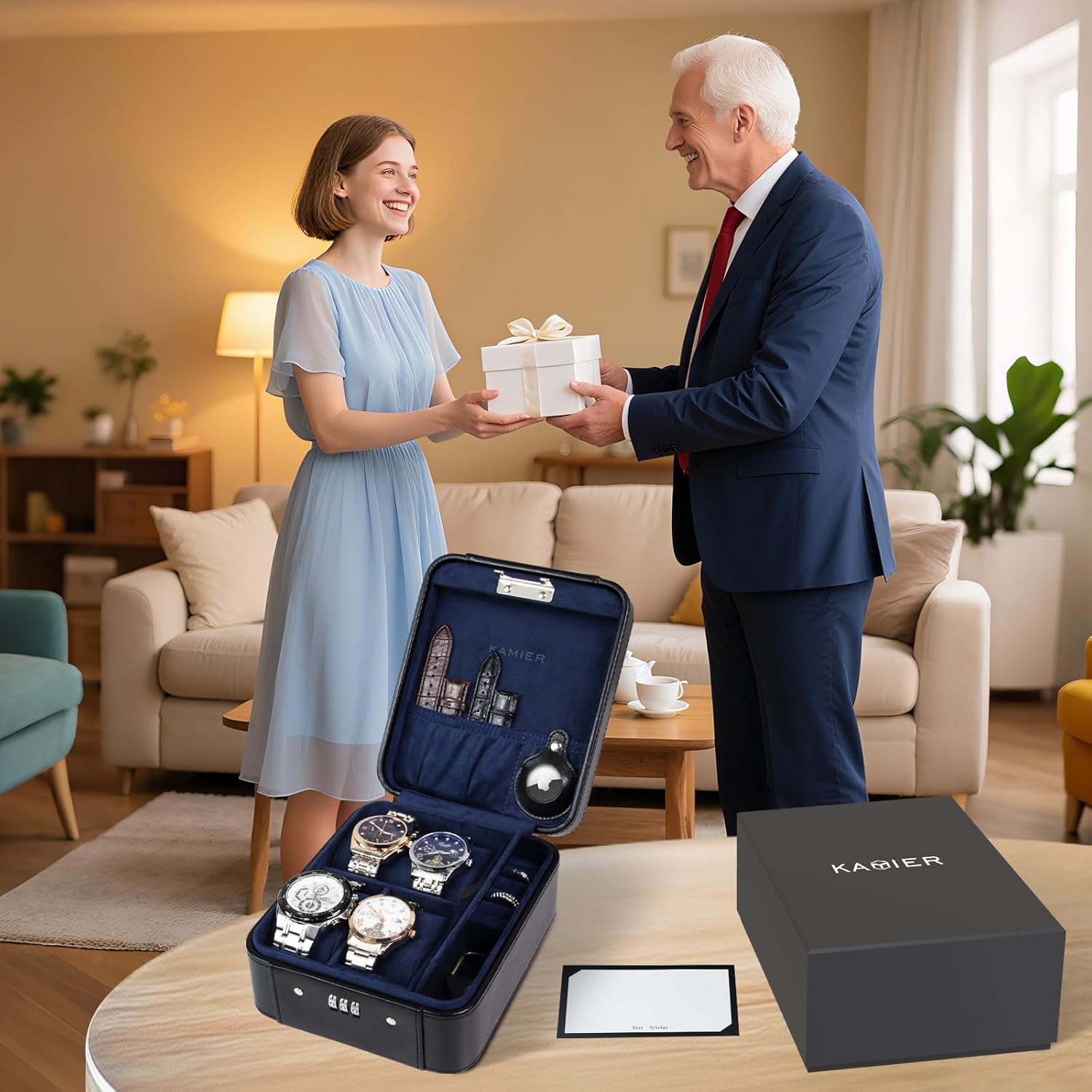 - 【Ideal Gift for Men】Kamier watch travel case for men comes with gift packaging, making the watch storage box the perfect gift for watch collectors and travelling lovers on Father's Day, birthdays, Anniversaries, Valentine's Day, Christmas.