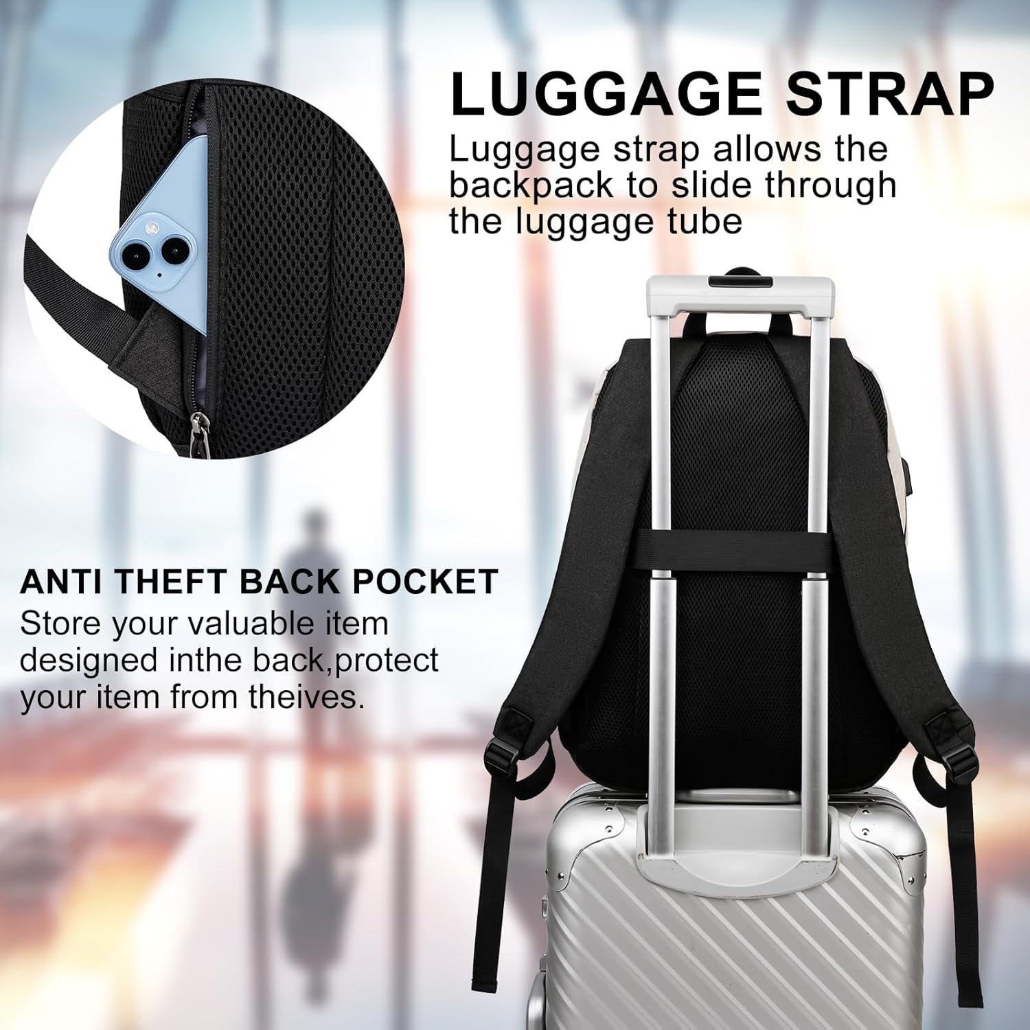 Backpack for Women, School Backpack with USB Charging Port for Teen Girls, 15.6 inch High College Bookbag Laptop Back Pack with Anti theft Water Resistant, Beige
