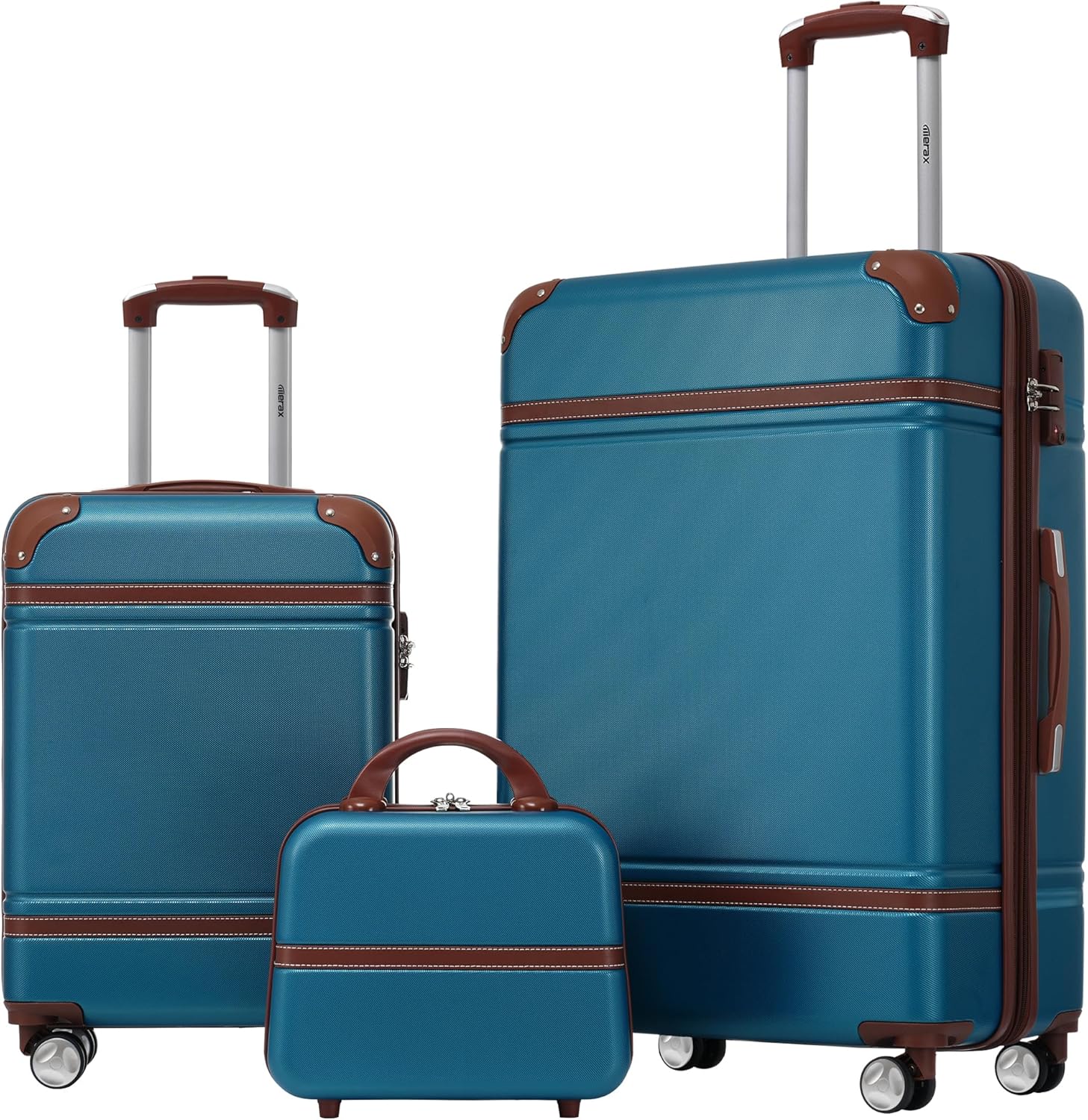 Merax Luggage Set 2 Piece Suitcase Set with Cosmetic Case Expandable Spinner Wheels Vintage Luggage Sets(Blue,20"+28")