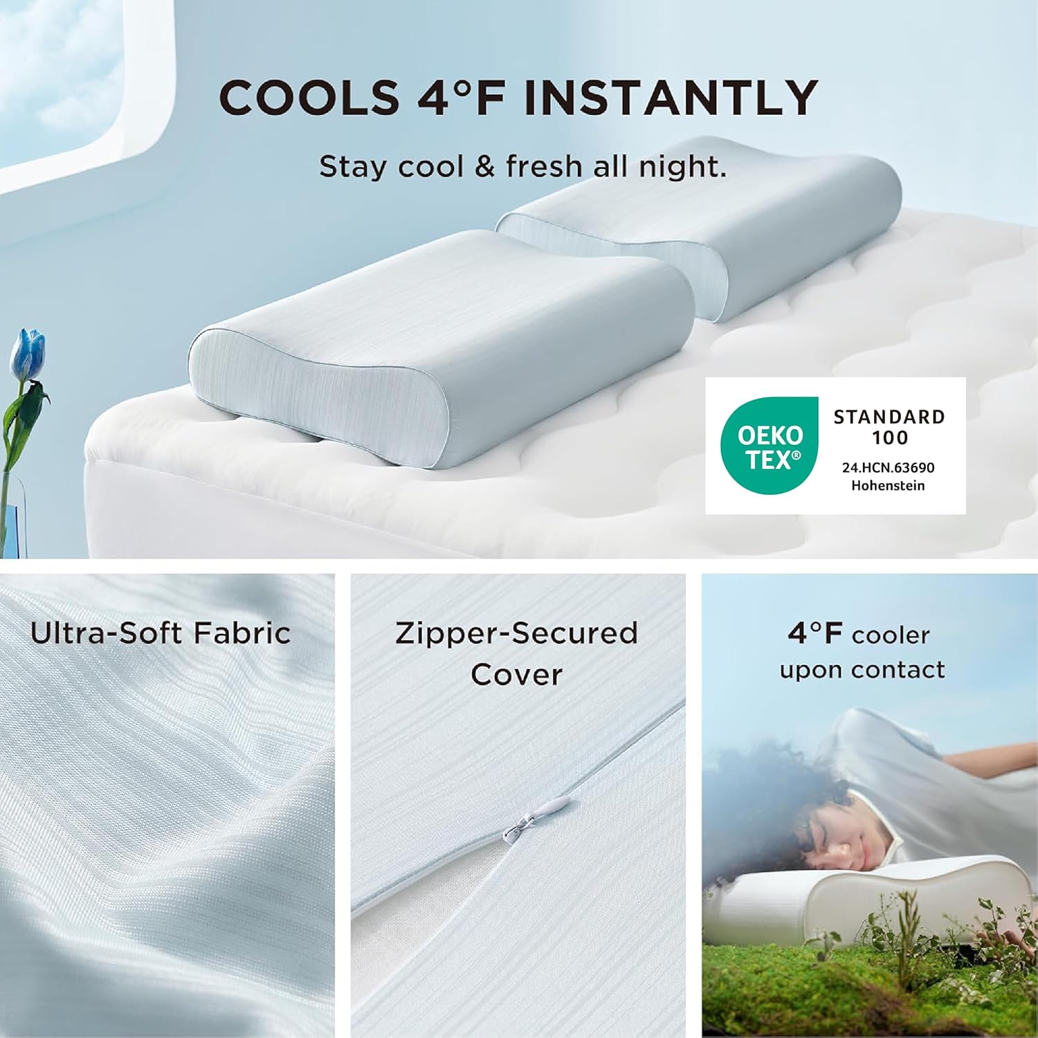 Bedsure Cervical Neck Pillow for Sleeping, Memory Foam with Cool-Touch Ice Pillowcases, Ergonomic Contour Pain Relief, Orthopedic Pillow for Neck Support for Side, Back, Stomach Sleepers