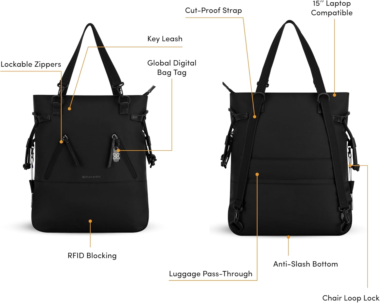 Sherpani Tempest, Anti Theft Convertible Backpack Tote, 14L Travel Backpack, Travel Gifts for Women, Handbags, RFID Protection, Fits 15” Laptop (No Sleeve) (Carbon)