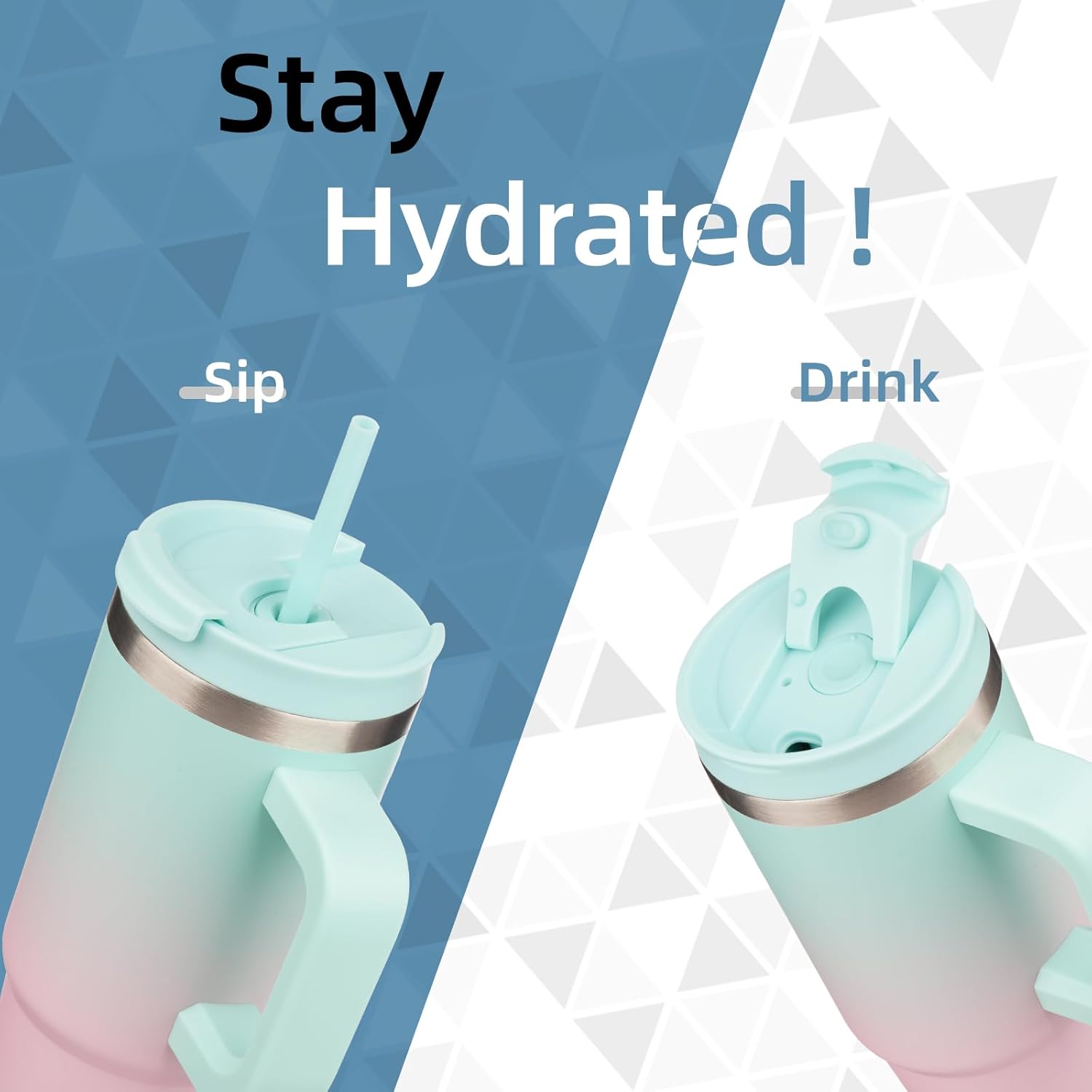 40 oz Tumbler with Handle and 2 Straws,2 in 1 Lid Insulated Water Bottle Stainless Steel Travel Coffee Mug,Gum