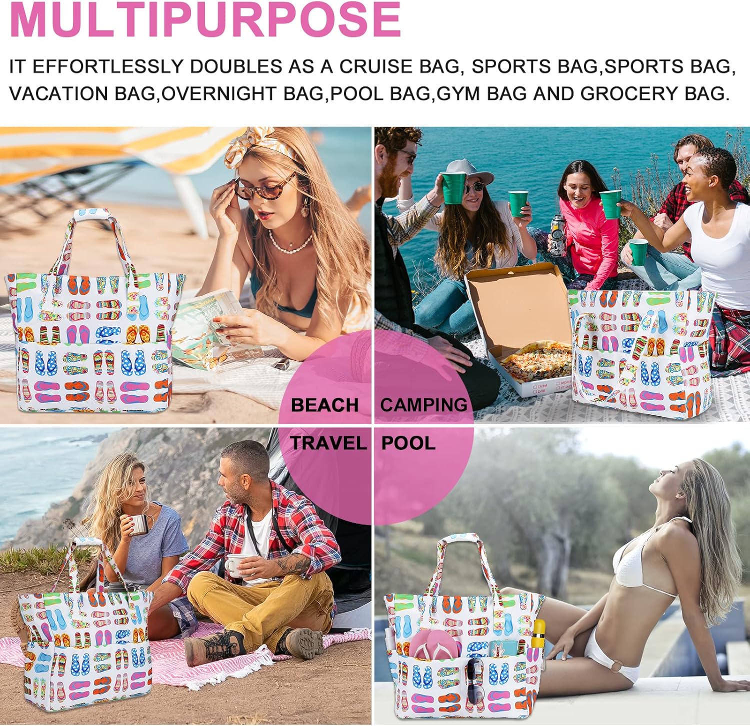 Waterproof Beach Tote Pool Bags for Women Ladies Extra Large Gym Tote Carry On Bag With Wet Compartment for Weekender Travel
