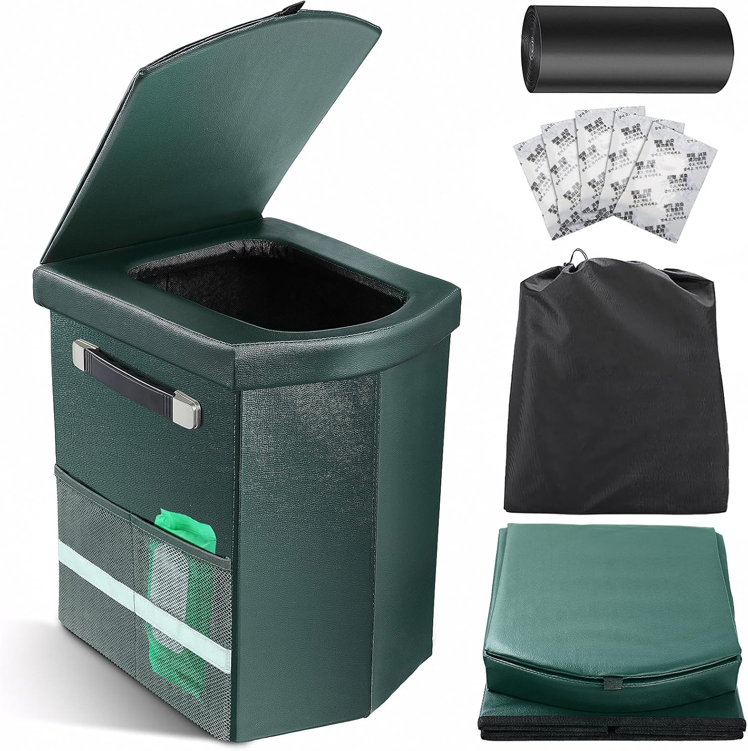 2025 Upgraded 16.5'' XL Portable Toilet for Adults,Tall Camping Toilet with Lid and Convenient Carry Bag, Portable Potty for Camping, Hiking, Car Travel,Truck, RV, Boating, Road Trips, Beach (Green)