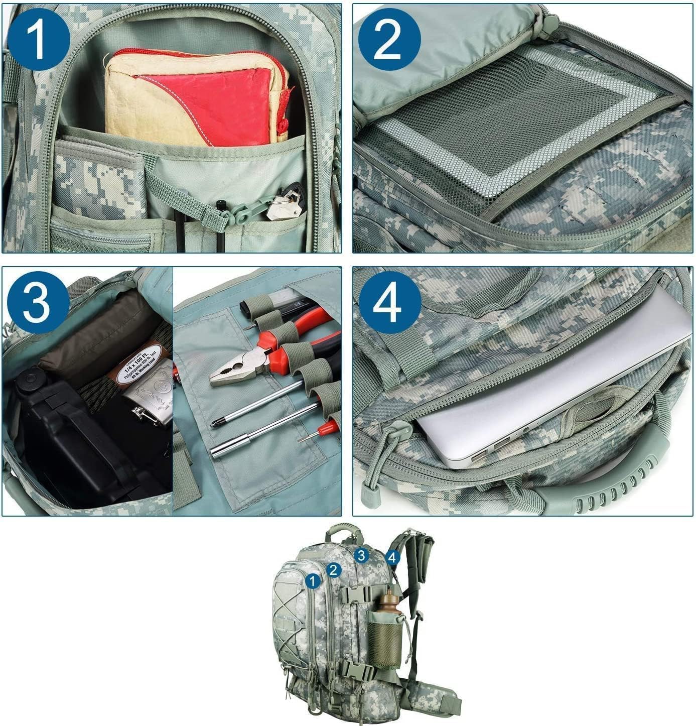 Large Tactical Backpack for Men Military Backpack with DIY System for Travel, Work,Camping,Hunting,Hiking,Sports (Camo A)