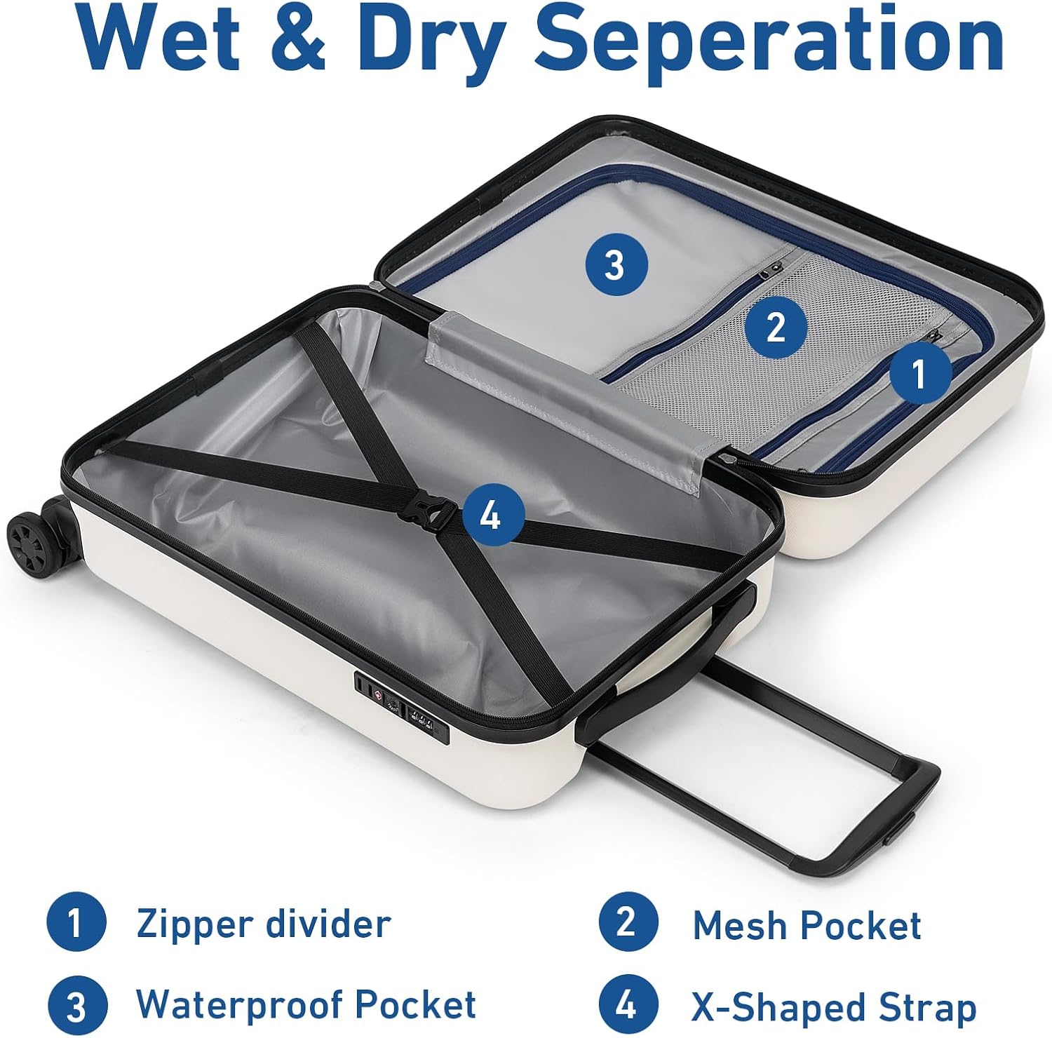 KYME Suitcase Hardshell With Double Spinner Wheels, PC+ABS TSA Lock Travel Luggage (White, 20" Carry On)