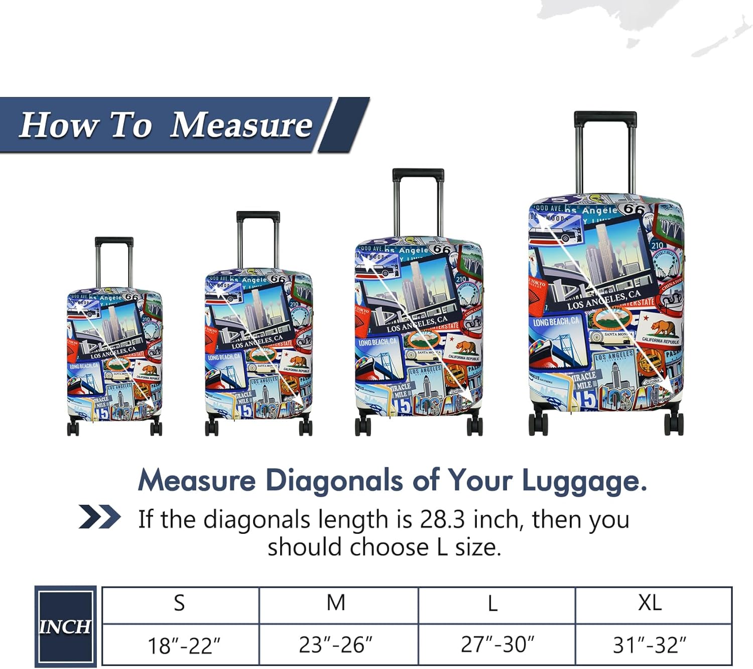- Four sizes to fit almost any luggage: S: fits 18-22 inch luggage, M: fits 23-26 inch luggage, L: fits 27-30 inch luggage, XL: fits 31-32 inch luggage. Please measure your suitcase before purchasing. Only luggage cover, suitcase not included.