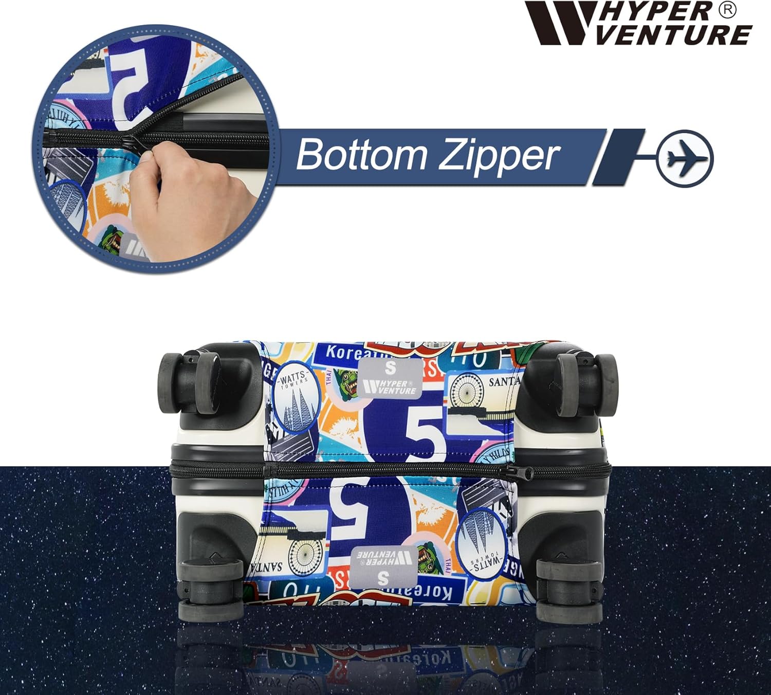 HYPER VENTURE Washable Luggage Cover - Fashion Suitcase Protector Fits 27-30 Inch Luggage (Travel Location, L)