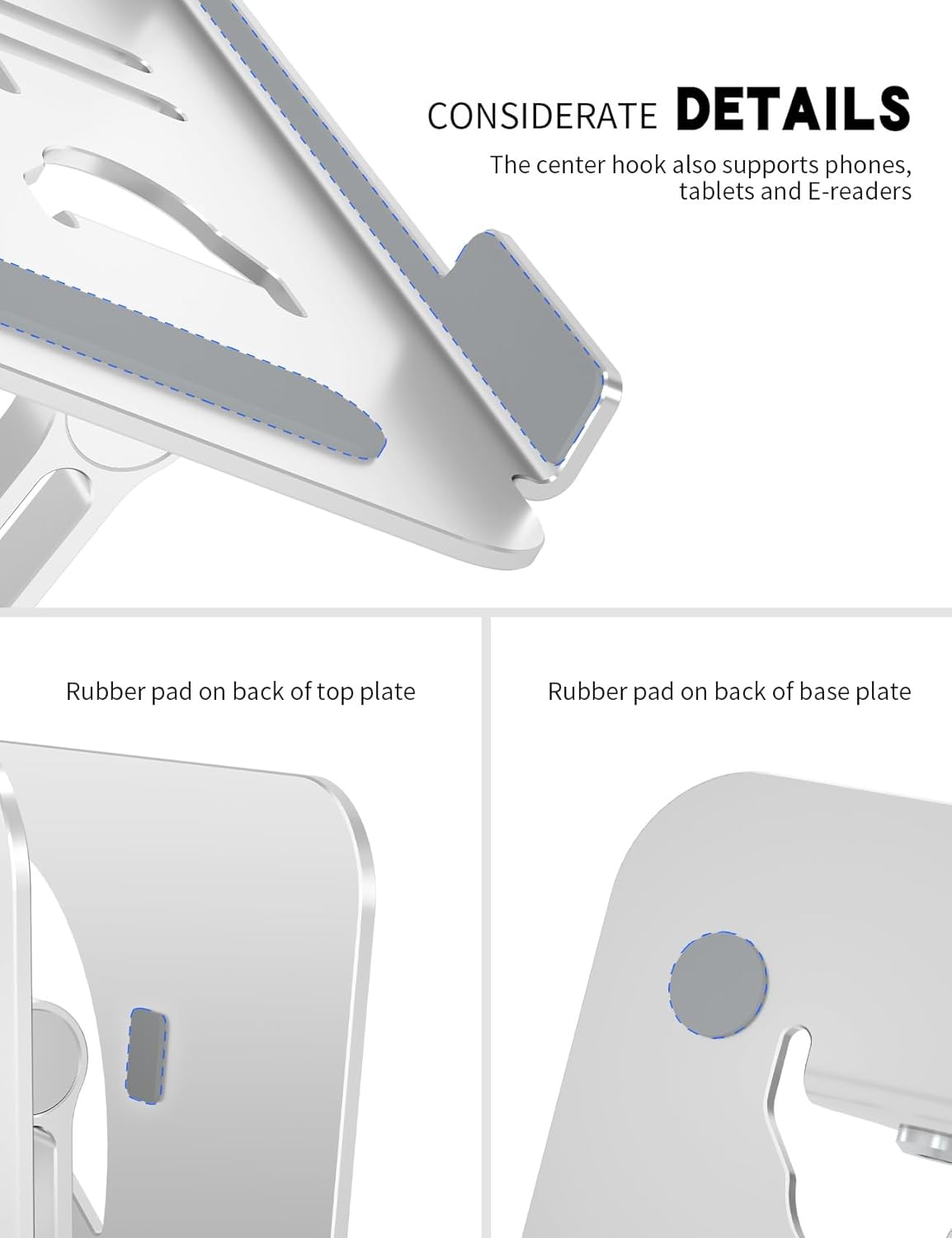 - STABLE AND LONG-LASTING: Our ToBeoneer laptop stand, crafted from high-quality, bright, smooth, wear-resistant, and rust-proof aluminum, offers exceptional stability and longevity. Its unique fastening technology enhances sturdiness, while the wide, silicone-padded hook ensures device safety