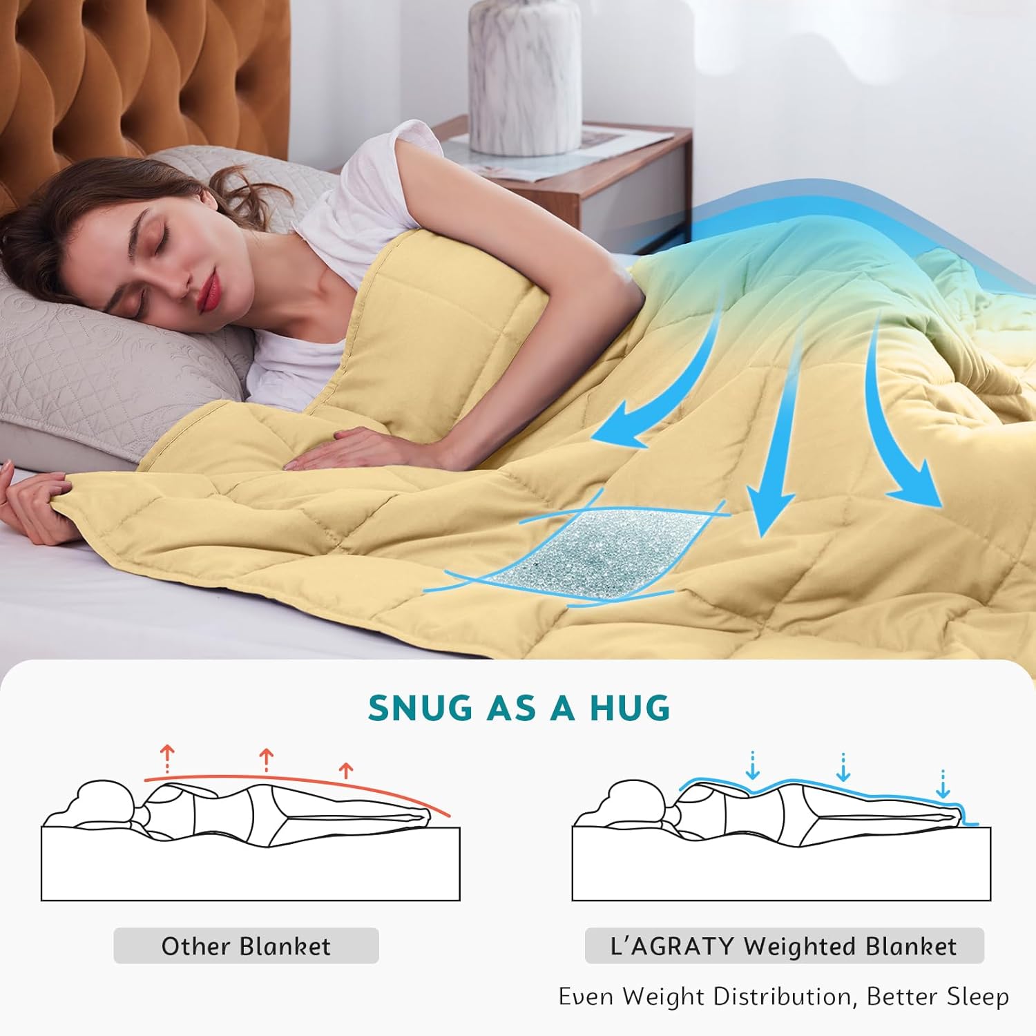 L'AGRATY Weighted Blanket - 60"x80" 15lbs Cooling Breathable Heavy Blanket Microfiber Material with Glass Beads Big Blanket for Adult All-Season Summer Fall Winter Soft Thick Comfort Blanket