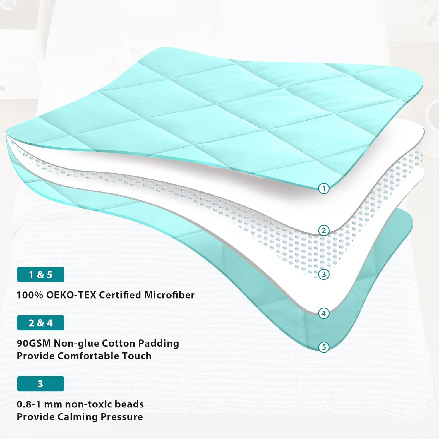 - Premuim Material: The weighted blanket is made of soft breathable microfiber material and filled with 0.8-1 mm non-toxic hypo-allergenic glass beads. This blanket could providing a cooling sensation in the summer and a breathable warmth in the winter