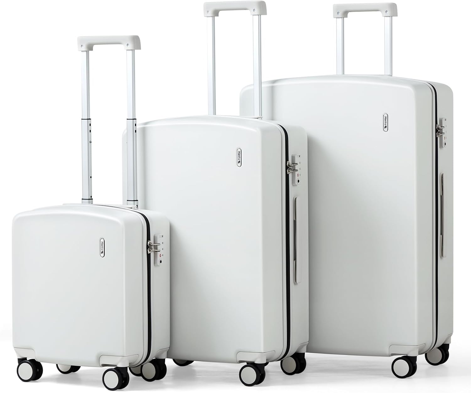 Hanke Hard Shell Luggage Sets 3 Pieces, Carry On and Checked Luggage Sets with Spinner Wheels, Durable PC Hardside Rolling Suitcase for Travel (16/24/28 Inch,Smoke White)