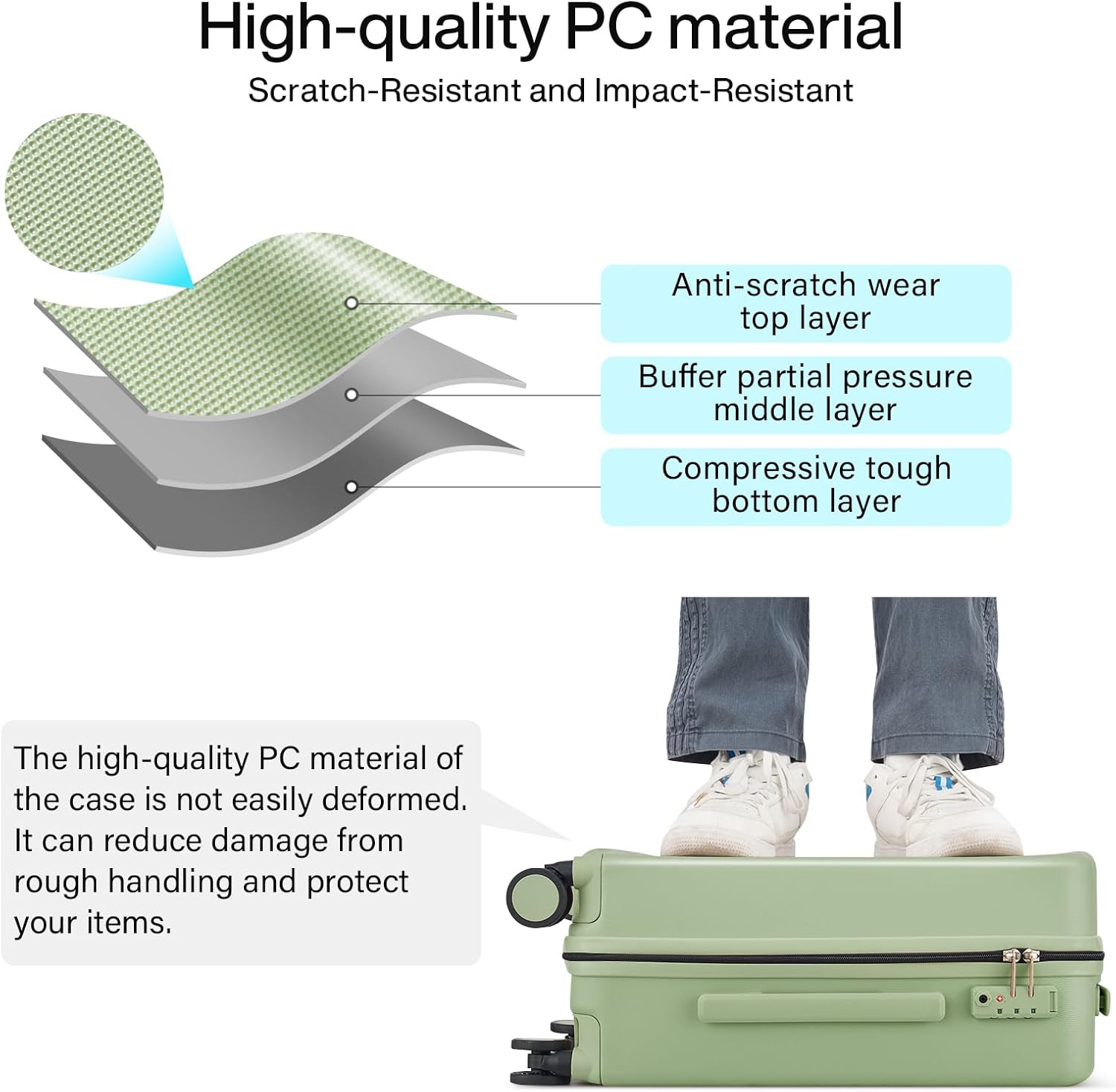 - 【Lightweight Yet Durable】This hard shell suitcases is made of premium Covestro polycarbonate(PC) which is extremely lightweight yet durable. And the hard case luggage is fine grain texture, not easy to scratch, keeping your suitcase beautiful trip after trip.