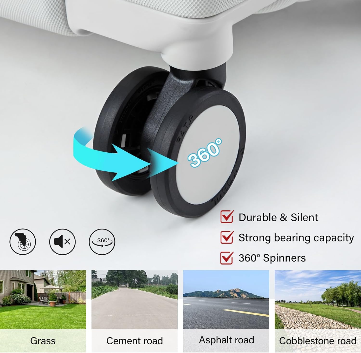 - 【Superior Maneuvering】Hardshell luggage sets with a sturdy aluminum alloy retractable handle that offers multiple height positions in use and allow you to quickly maneuver anywhere. This travel luggage equipped with 360° spinner wheels to ensure a smooth glide. Soft Rubber top grip handle and side carry handle for stable lifting.
