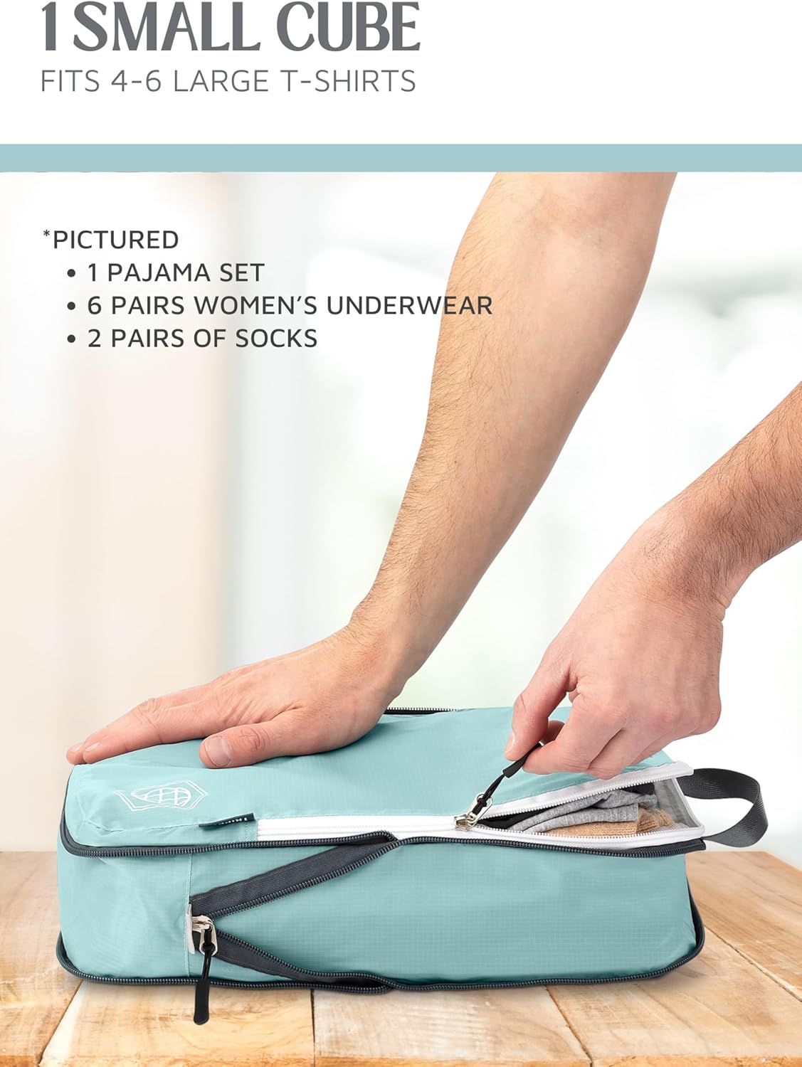 - LUGGAGE ORGANIZER! Compression packing bags are a packing essential for travel-especially useful as a backpack, luggage and suitcase organizer. Keep different outfits in separate compression cubes and always be ready for what’s next! Easily pack away clothing like raincoats/heavier jackets that are not used as often. Use empty cubes to pack dirty laundry in and keep your suitcase or backpack organized.