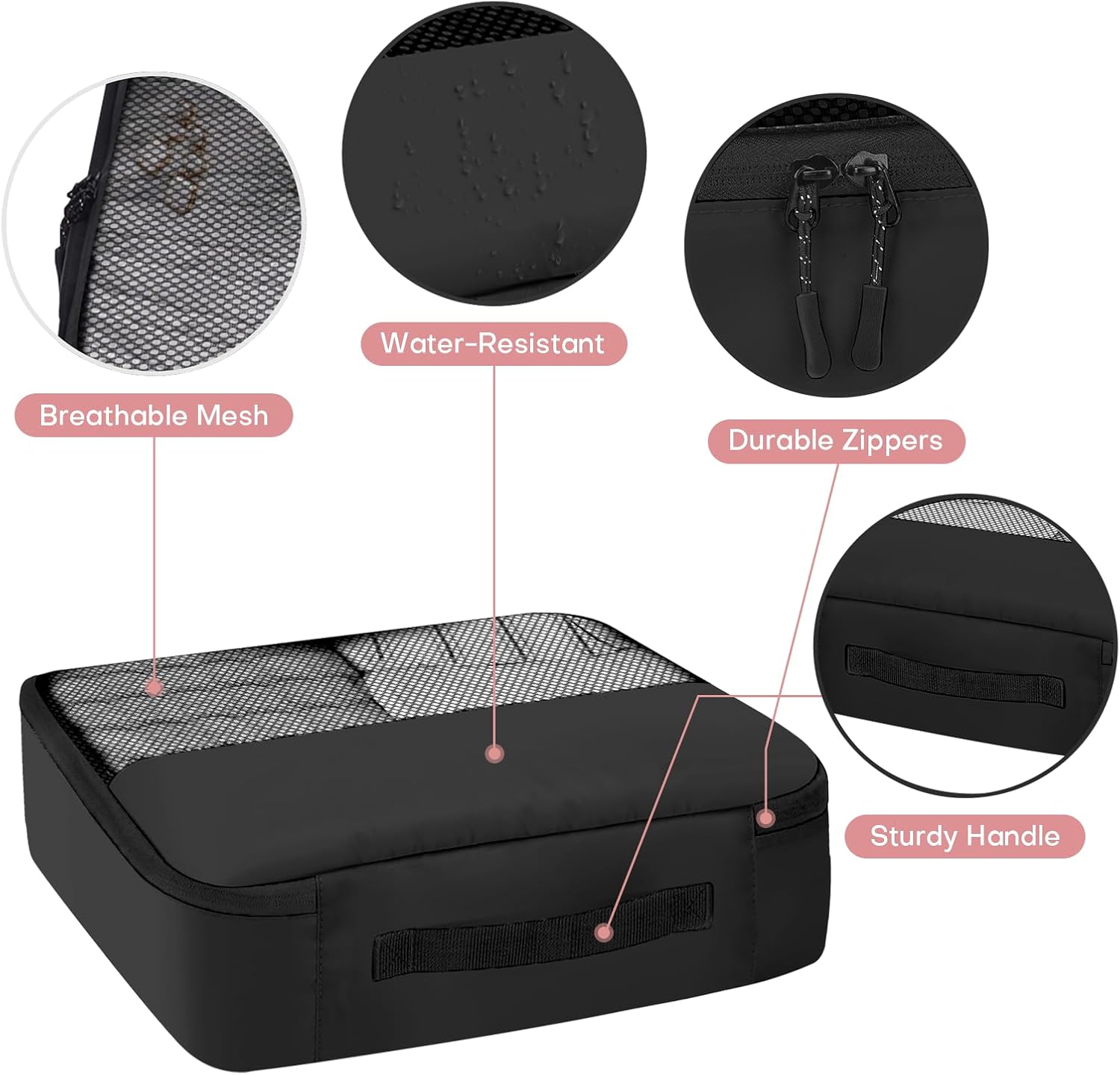 - Convenient Space-Saver: Maximize your packing space with our travel cubes. These cubes tightly wrap each garment, reducing friction and keeping your clothes smooth. The transparent mesh design allows easy access to specific items, so you can find what you need without rummaging through your entire suitcase.