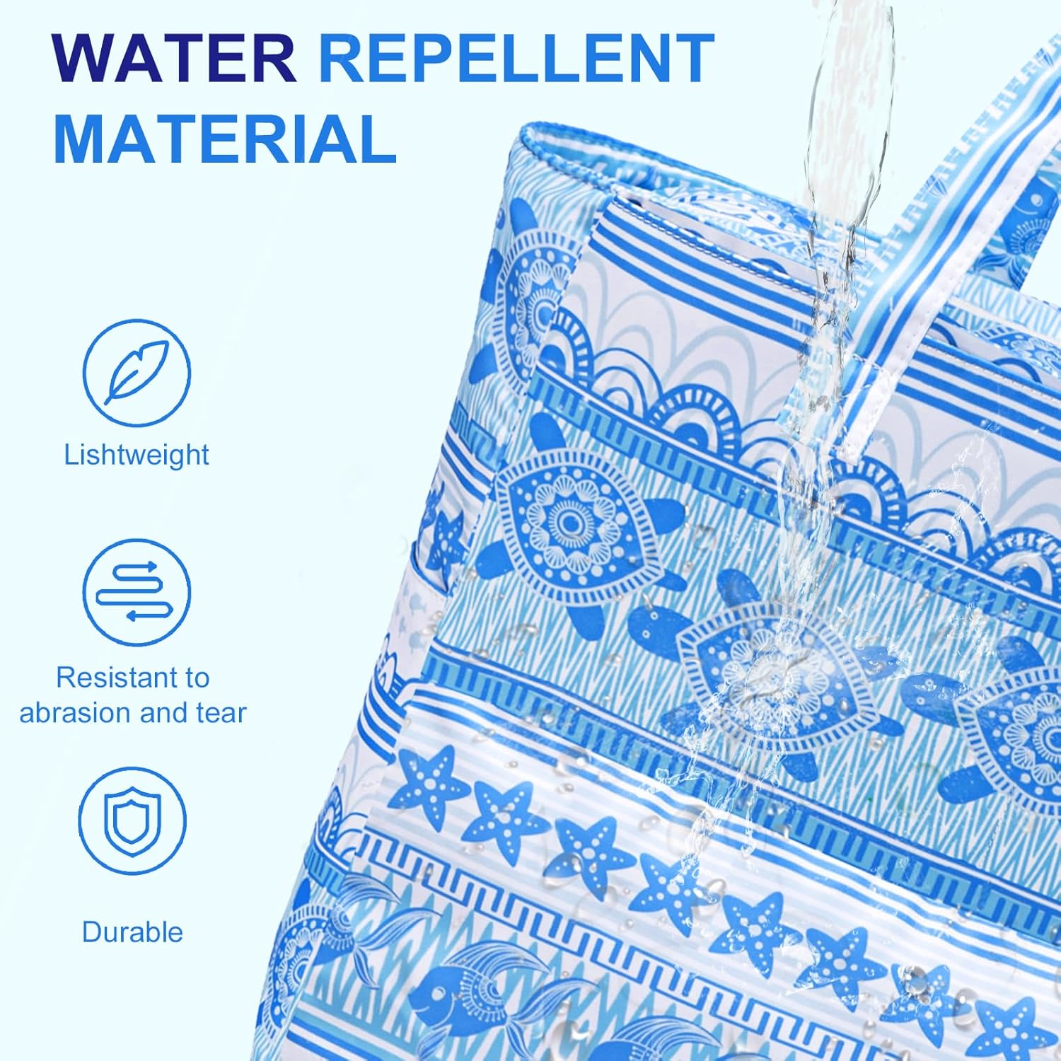 - Sandproof Beach Bag : This beach tote features high density polyester, which is sandproof, easy to clean, sand shakes right off instead of carrying it home with you.