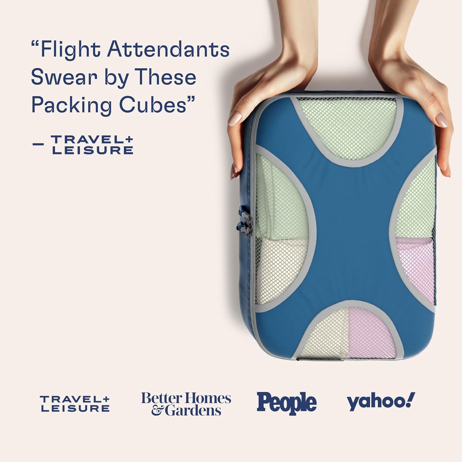 Shacke Premium 8 Packing Cubes Set - Lightweight Mesh Travel Luggage Organizers with Laundry Bag, 8-Piece Suitcase Storage System (Navy)