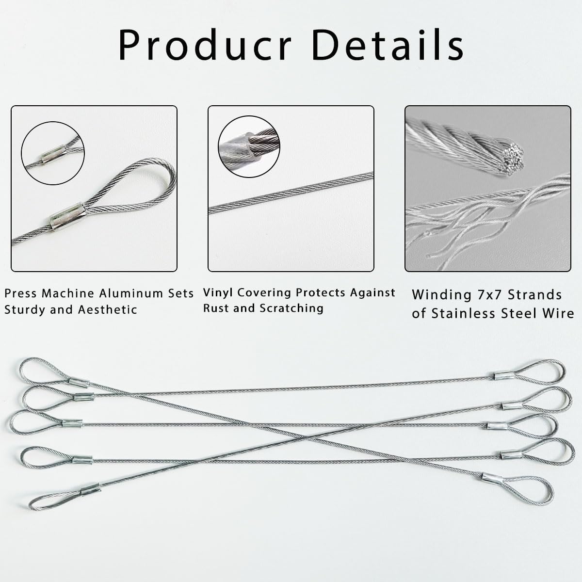- Package Includes: You will get 5 pcs stainless steel safety cable. our steel wire lock is 12 in / 30cm in length, 0.08in/ 2mm thickness.(The loops locked with aluminum crimping clamps sleeves and cannot be adjusted.)
