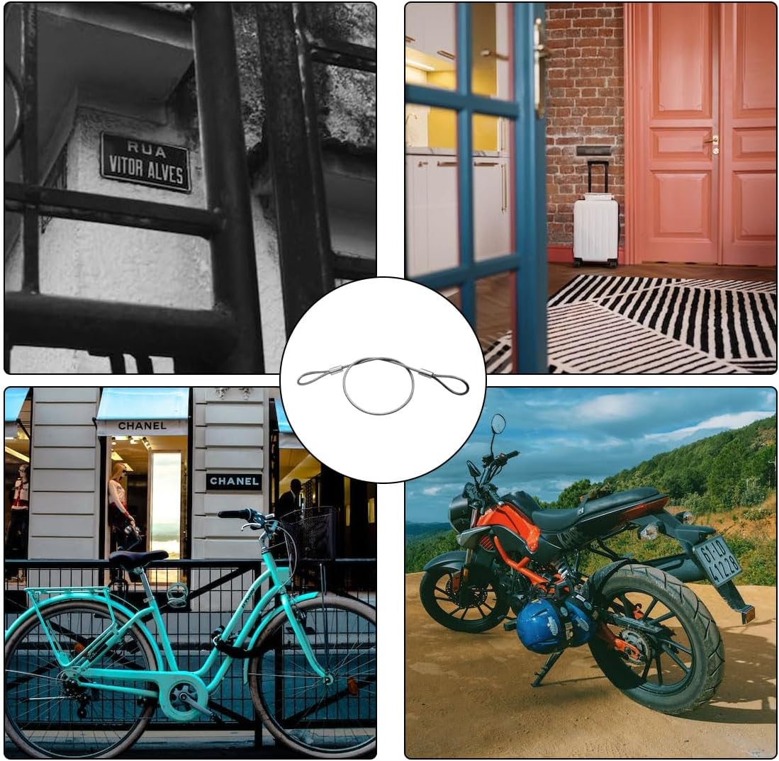 - Application: Luggage Lock Safety Cable is used for hanging and securing, can be used to connect strap or clip. safety cable can be used to lock items such as bicycles, luggage, packages, lights, doors, fences, etc., and can also be used to connect, such as DIY light strings, picture displays, home decorations, garden lines, Happy birthday (ribbons, balloons, photographs), Halloween Decor , Christmas Decor etc. It can also be used to hang some lightweight items to prevent falling.(Do not use it to lift or pull heavy loads, only for safety cables and hanging light weight.)