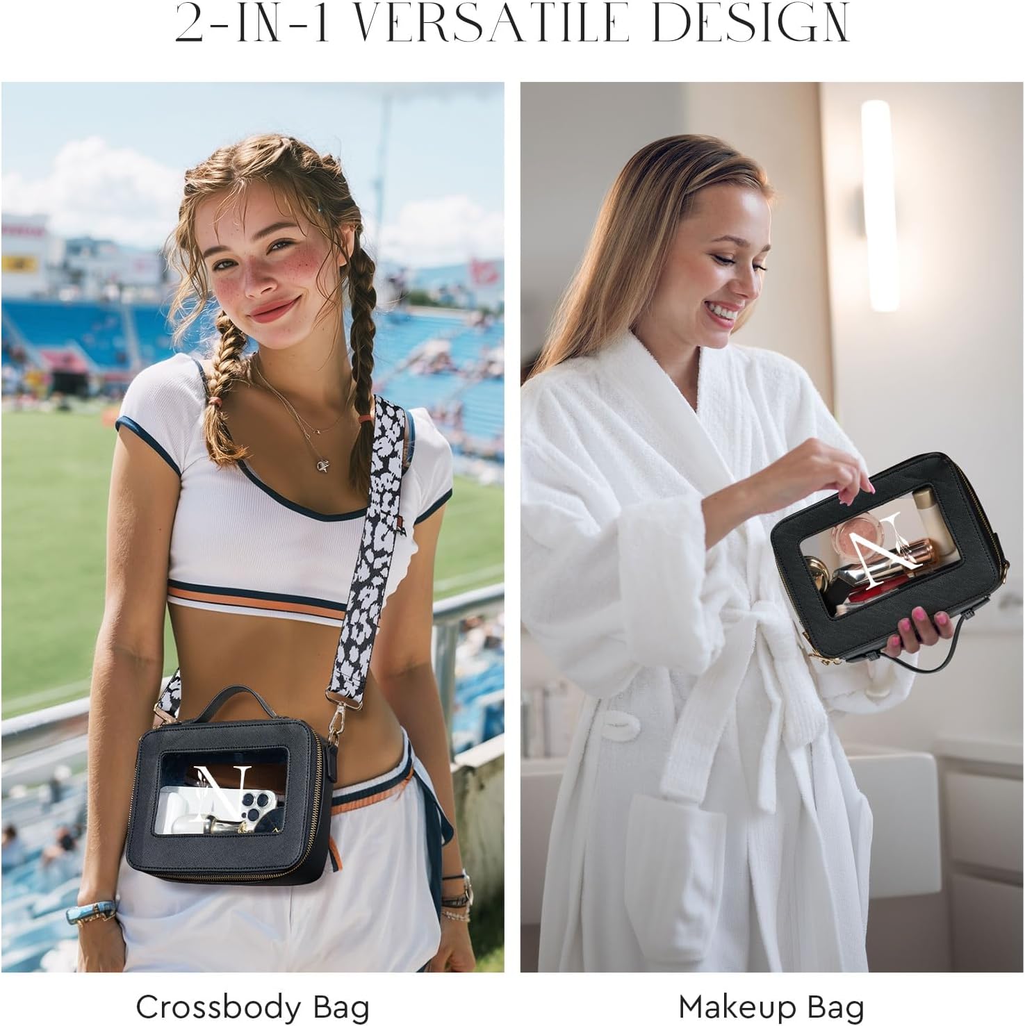 - 2-in-1 Versatile Design: Remove the strap, and it becomes a compact travel makeup bag—perfect for cosmetics, toiletries, your phone, wallet, or everyday essentials. Attach the adjustable strap, and it transforms into a stylish crossbody bag, ideal for concerts, sports events, festivals, and all kinds of activities