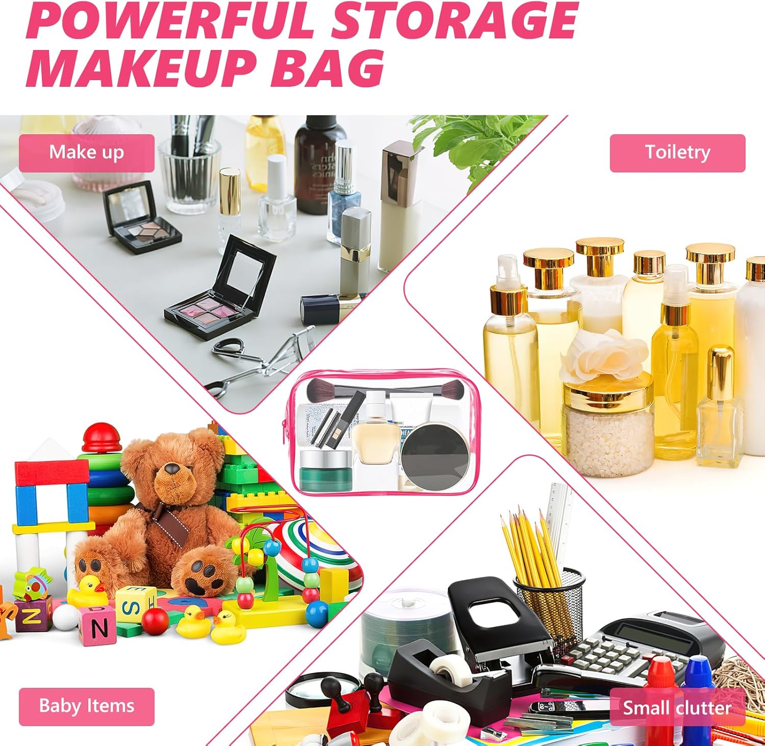 - 【TSA APPROVED】 The TSA certified clear toiletry bag strictly follow 3-1-1 airport regulations, so you don't have to worry about getting through airport security. All makeup bags are made of clear PVC material, so you can see the contents of the bag at a glance, and are BPA-free, safe and durable.