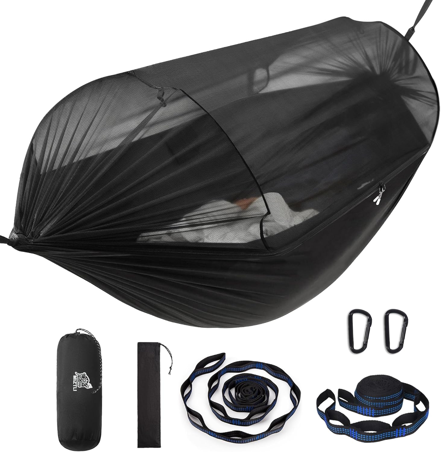 - Revolutionized Comfort in the Great Outdoors - Experience the ultimate outdoor relaxation with MIZTLI's new upgraded Camping Hammock with Net (The hammock net is not removable). This double &single hammock offers unique design creating a tent-like space. Enjoy ample room without the net touching your face. Enjoy the beauty of nature without compromise