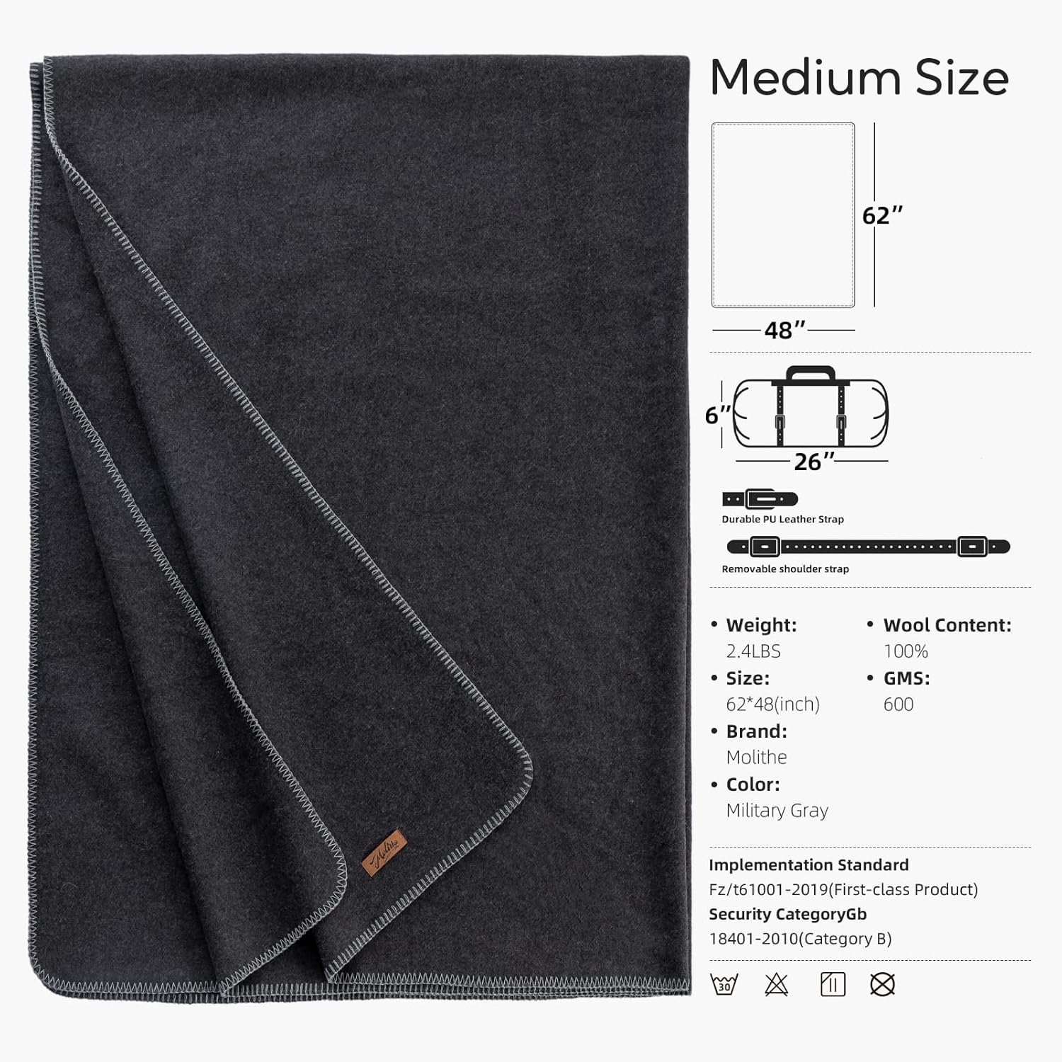 - INDOOR OR OUTDOOR - The large size (48"x 62") of the pure wool blanket keeps you and your friends warm and cozy during camping, tailgating parties, or outdoor concerts. It is also great for military surplus, camping, hiking, stargazing, backpacking, jungle expeditions, boating, fishing, hunting, or keeping in the car trunk as an emergency preparedness blanket.
