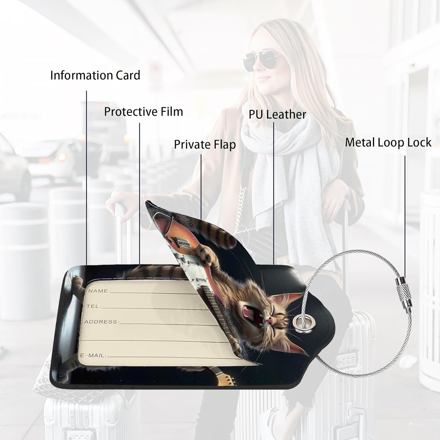 - Unique Pattern:Designed by Wvpslak with Fun Guitar cute cat Luggage tag.The unique pattern of the travel suitcase tags can highlight your personal style and help you quickly identify your luggage.