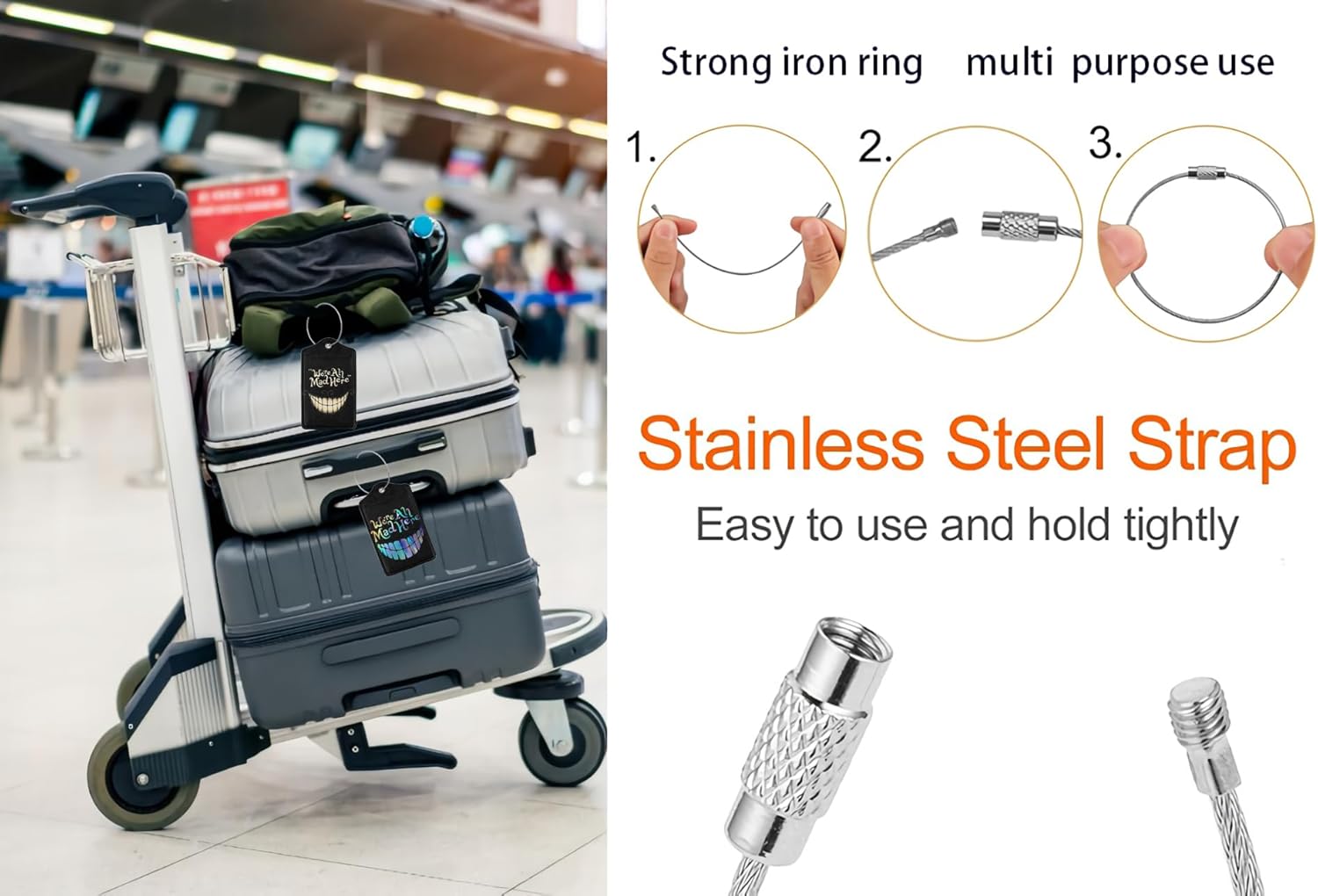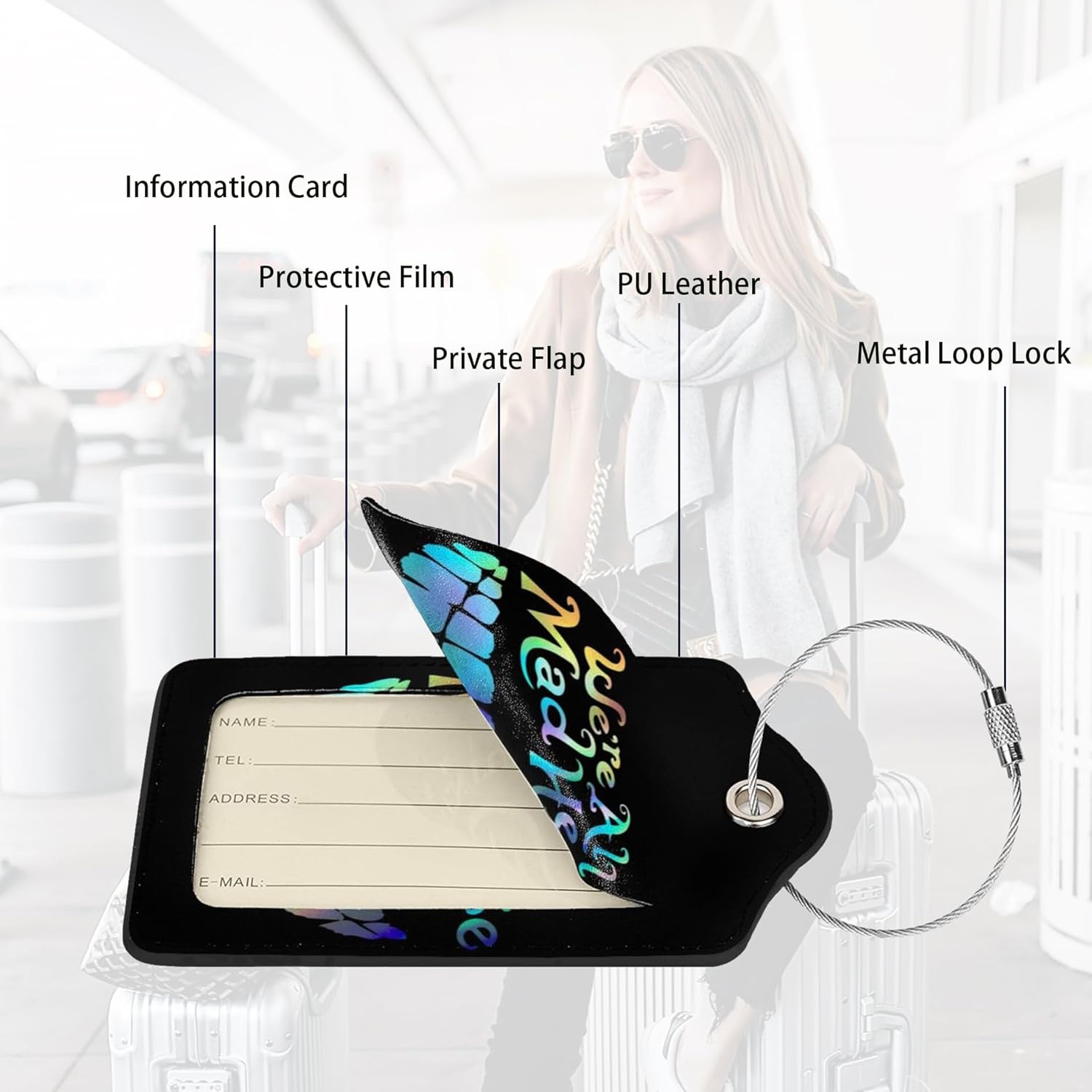 - Unique Pattern:Designed by Wvpslak with Funny Cute Smiley Face We're All Mad Here Luggage tag.The unique pattern of the travel suitcase tags can highlight your personal style and help you quickly identify your luggage.