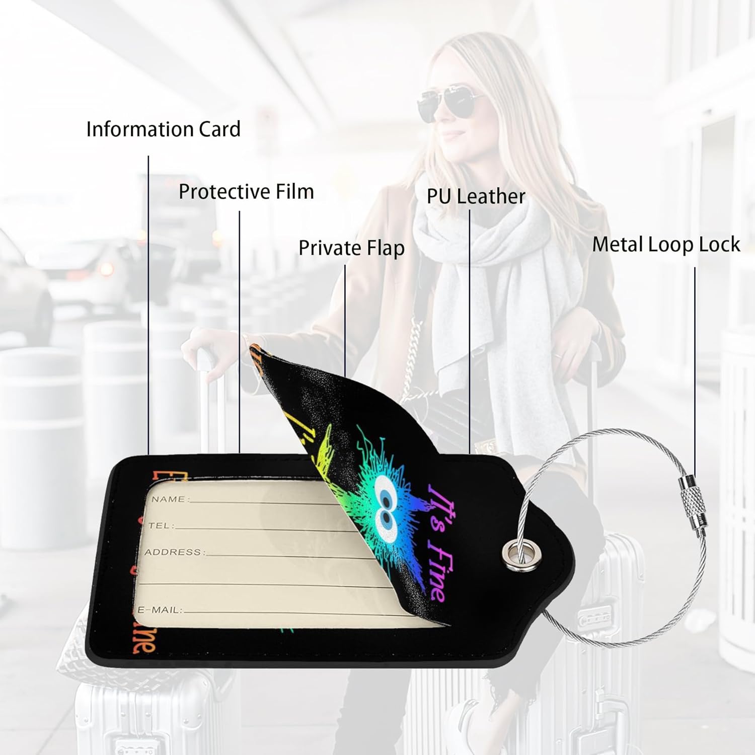 2 Pack Luggage Tags for suitcases Cute Funny I'm Fine It's Fine Color Luggage Tag, Leather Stainless Steel Loop Label Tag for Men Women Travel Bag Suitcase(Black Laser)