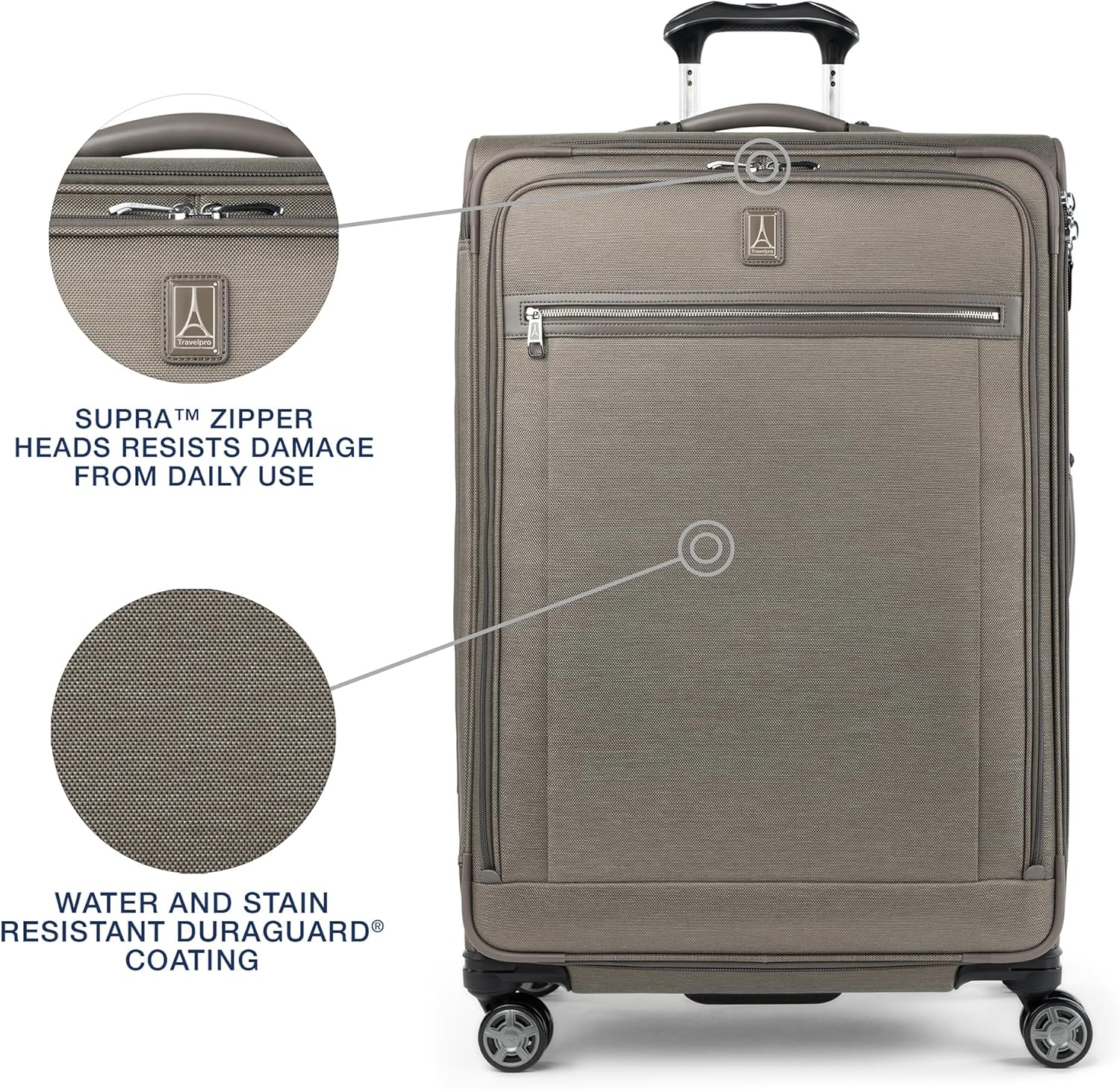 Travelpro Platinum Elite Softside Expandable Checked Luggage, 8 Wheel Spinner Large Suitcase, TSA Lock, Men and Women, Metallic Sand, Checked Large 29-Inch