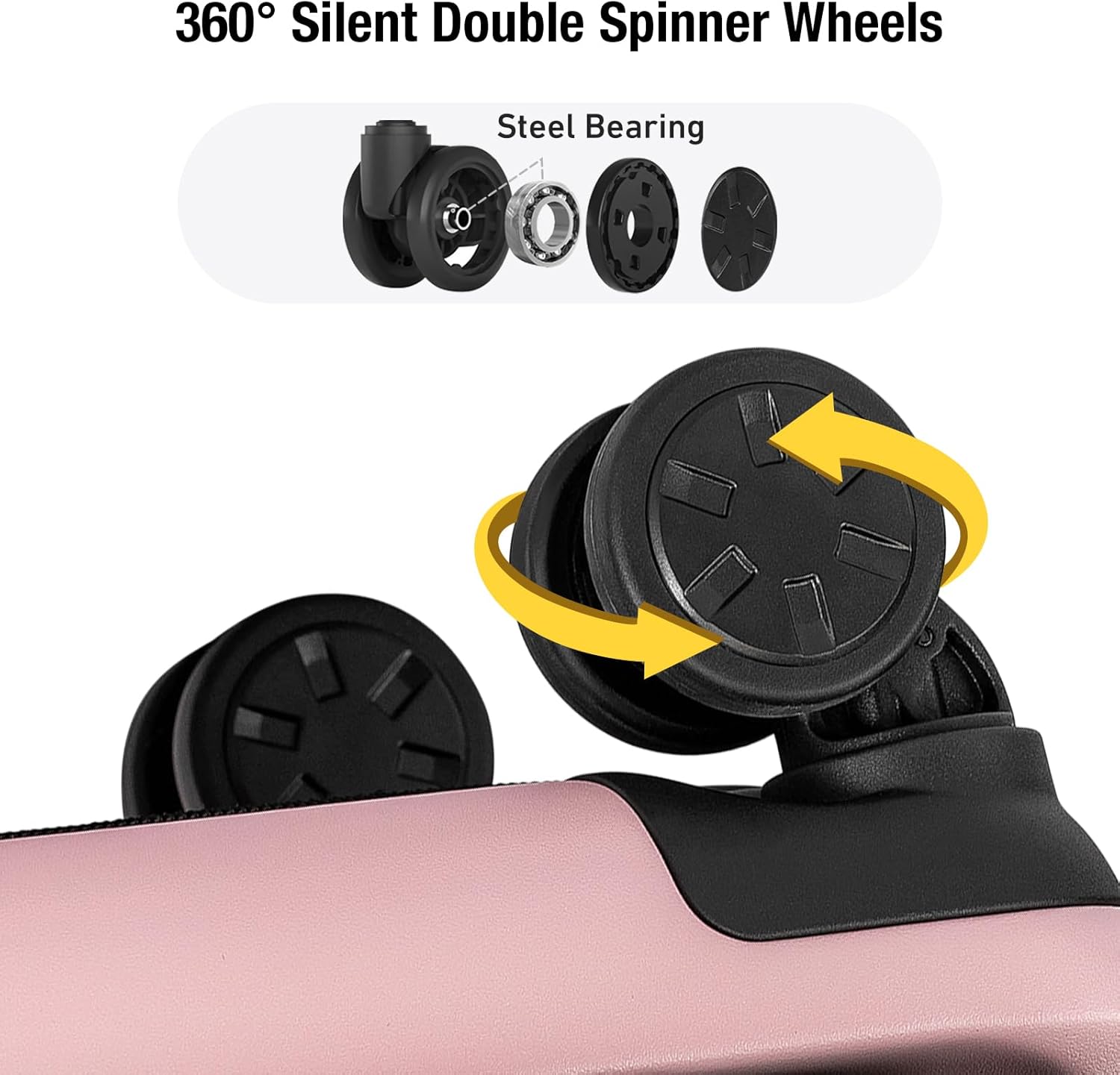 - Smooth 360° Spinner Wheels: Equipped with quiet, durable 360° spinner wheels, this suitcase glides effortlessly across various terrains, including cobblestone roads and carpets, making travel hassle-free and comfortable.