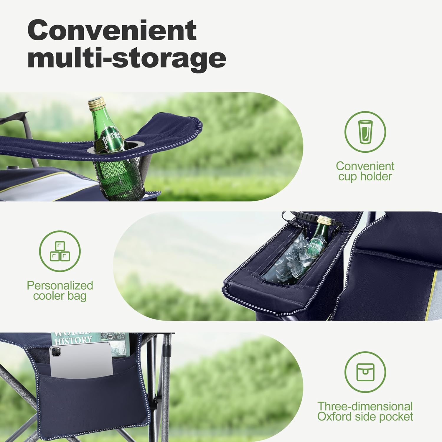 LET'S CAMP Oversized Folding Camping Chair Portable Outdoor Heavy Duty Padded Chairs Lawn Chair with Cup Holder, Storage Pocket and Cooler Bag, Supports 450LBS, for Camp, Travel, Picnic,2 Pack(Blue)