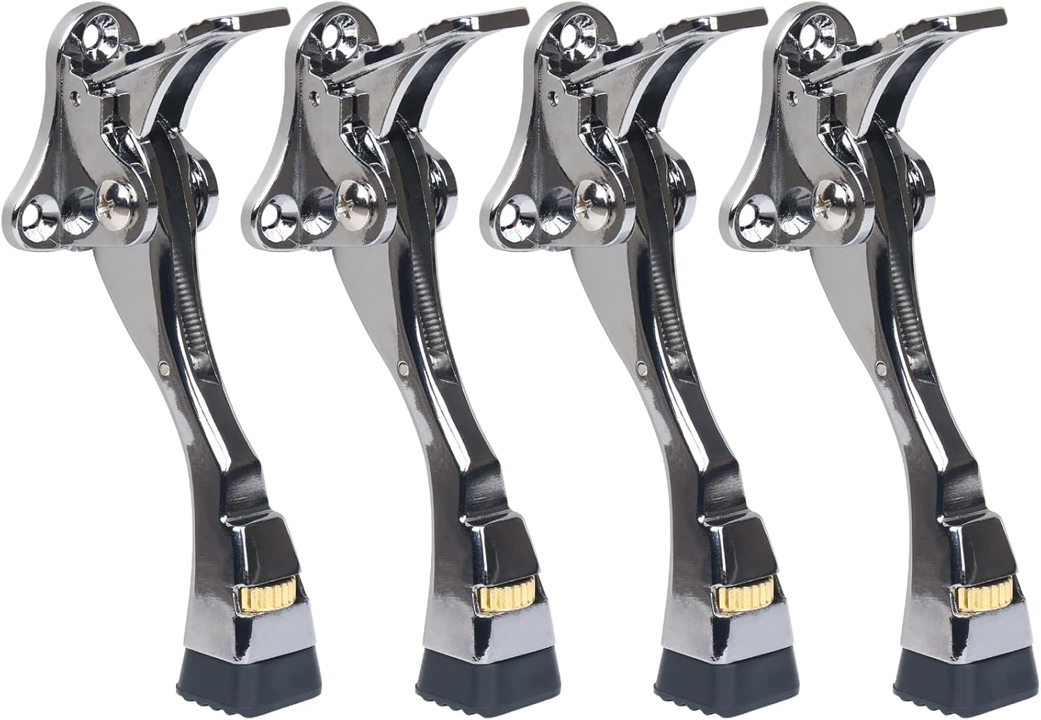 4 Packs Heavy Duty Kickdown Door Stopper, One Touch Adjustable Kickdown Door Stop for Heavy Doors, 4 inch Metal Door Kickstand with Rubber Tip & Wall Protectors for Wide Doors- Sliver