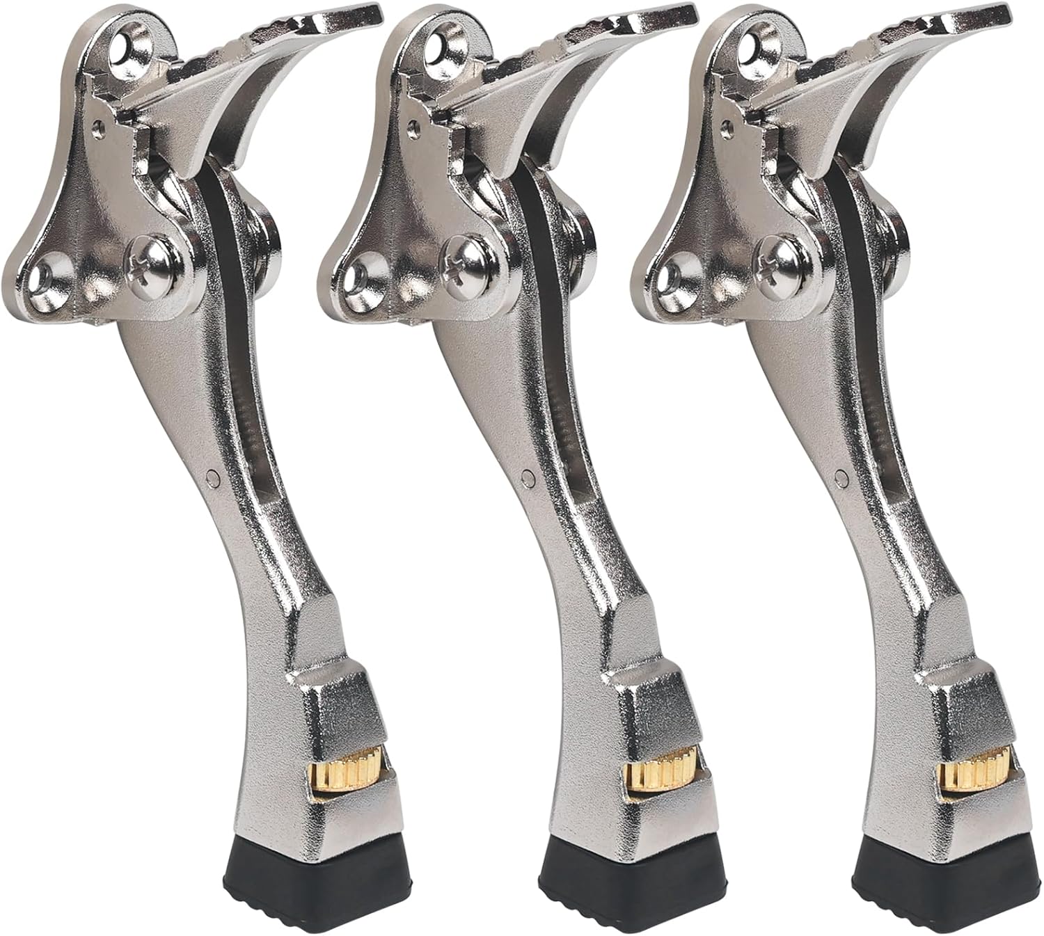 3 Packs Heavy Duty Kickdown Door Stopper, One Touch Adjustable Kickdown Door Stop for Heavy Doors, 4 in Metal Door Kickstand with Rubber Tip & Wall Protectors for Wide Doors