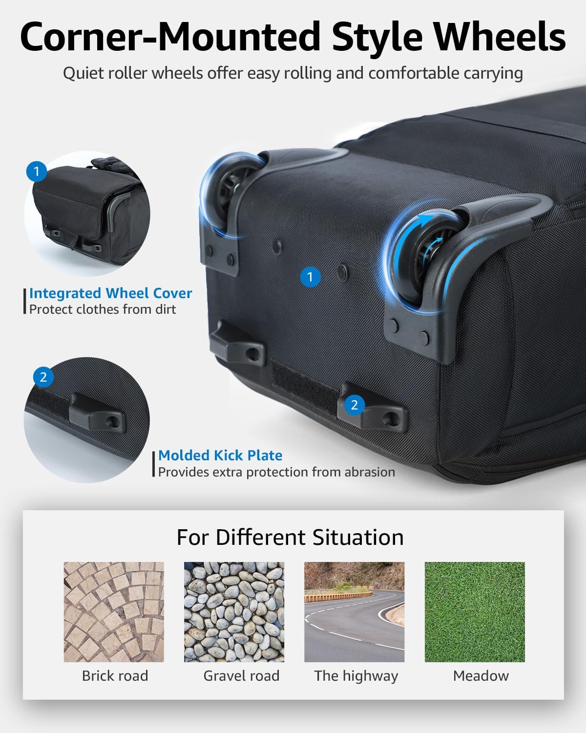- EASY TO CARRY: Hideaway telescoping and locking handle stores easily under the top zippered cover, ensuring a soft touch and comfortable grip. Shoulder straps can be tucked away in the back panel when not in use, providing another carry option as a roller backpack